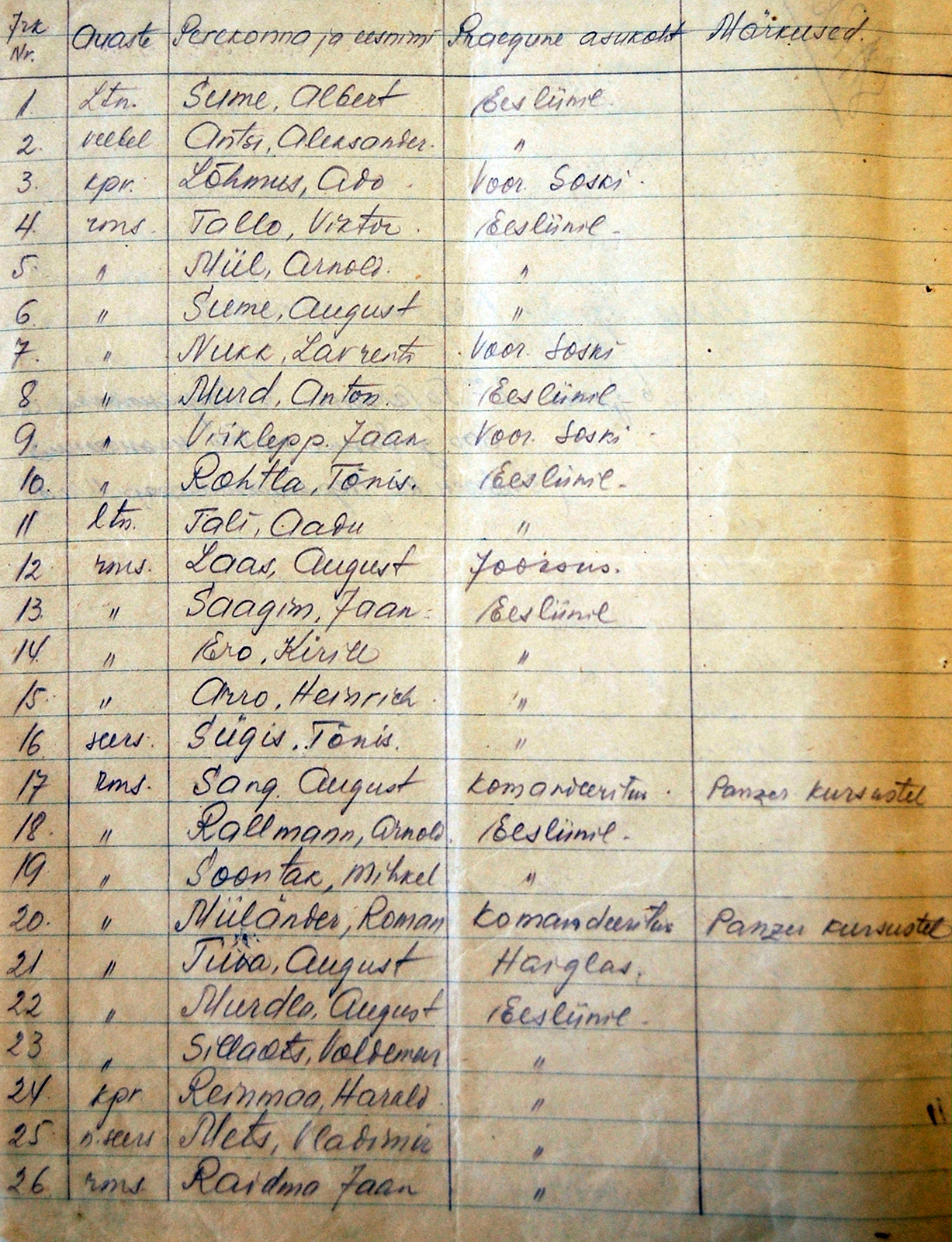 Samas kaustas järgmine nimekiri, mille päisesse oli kirjutatud II pataljoni 1. kompanii on aga ilmselt "Reval" rügemendi vastava allüksuse oma ja seos 6. PKR'iga puudub. Sellest nimekirjast omakorda järgmine, 7. kompanii nimekiri paistab olevat jällegi 6. PKR'i oma ja see on vist koostatud vangi langenute antud info põhjal.
