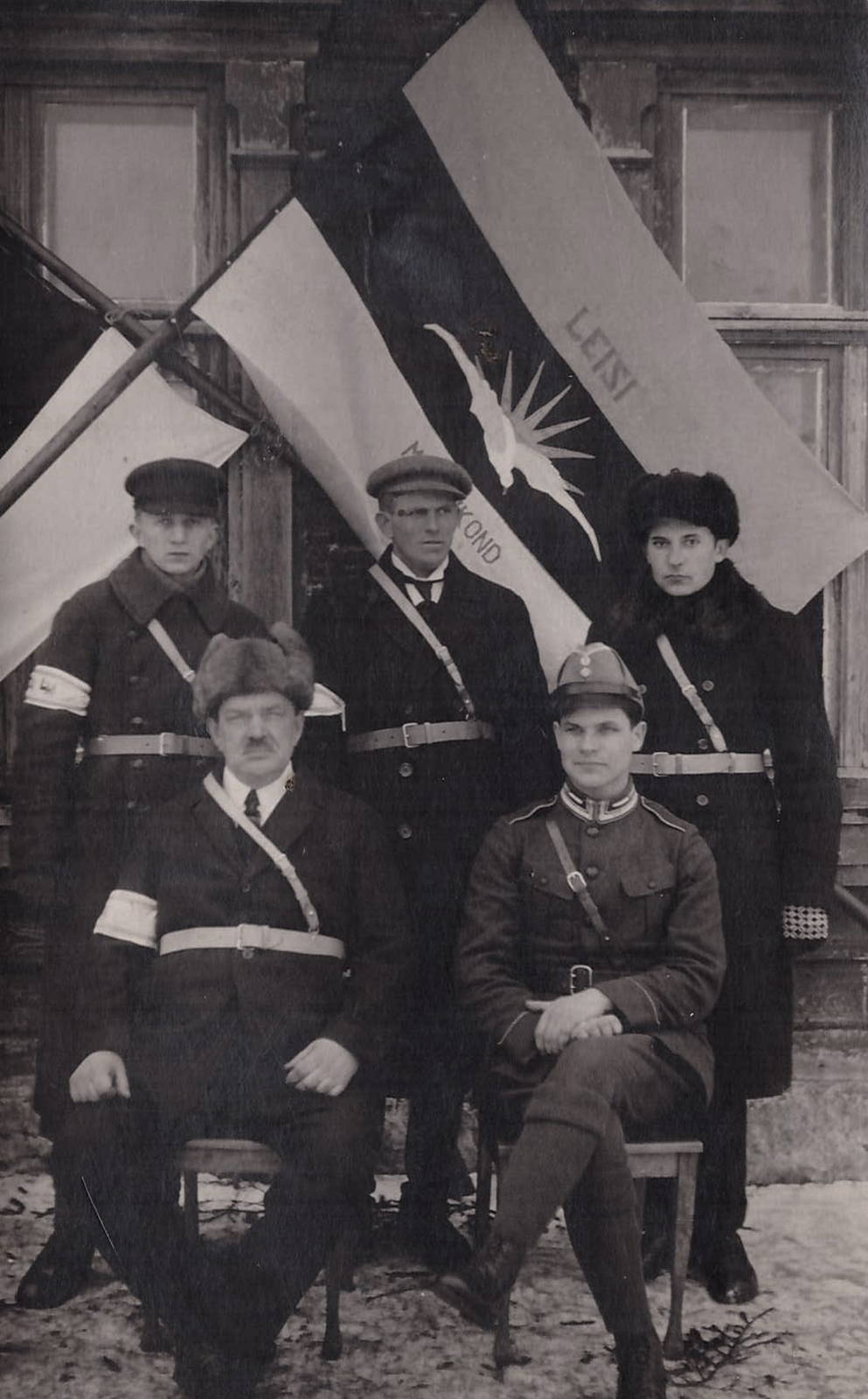 Toon näite ühest teisest jalgratturite fotost, mille ka siia foorumisse kunagi postitasin, seltskond Järvamma Kihme kandi jalgrattureid, spetsialistide poolt paigutatud tsaariaega, üsna mitmel mehel seljas ja peas aga Vabadussõja aegsed frentšid - mütsid, lisaks ilmselt üks mees ka tsaariaegse urjadniku kuue ja mütsiga.