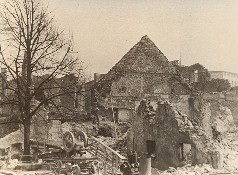 Harju tänav peale pommitamist. Hintzeri foto Estonia teatri saalist... ja järgmine koht Tallinnas nuputage välja?
