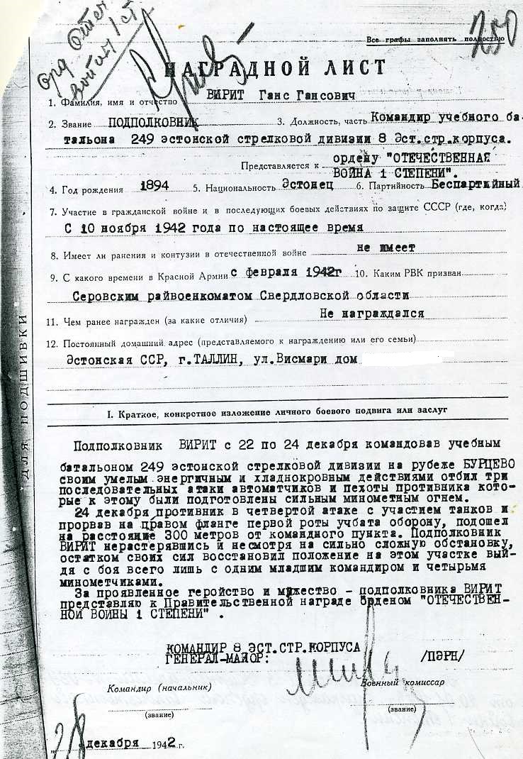 Alampolkovnik Hans Viriti Isamaasõja orden on küll kena leid. Mõned aastad tagasi sain Lembit Haljaste sama autasu, mis oli samuti Velikije Luki lahingute eest antud ning siis lugesin kusagilt raamatust, et kokku sai ELK Velikije Luki lahingute eest 21 Isamaasõja ordeni 1. järku. Virit siis ka üks kahekümne ühest.