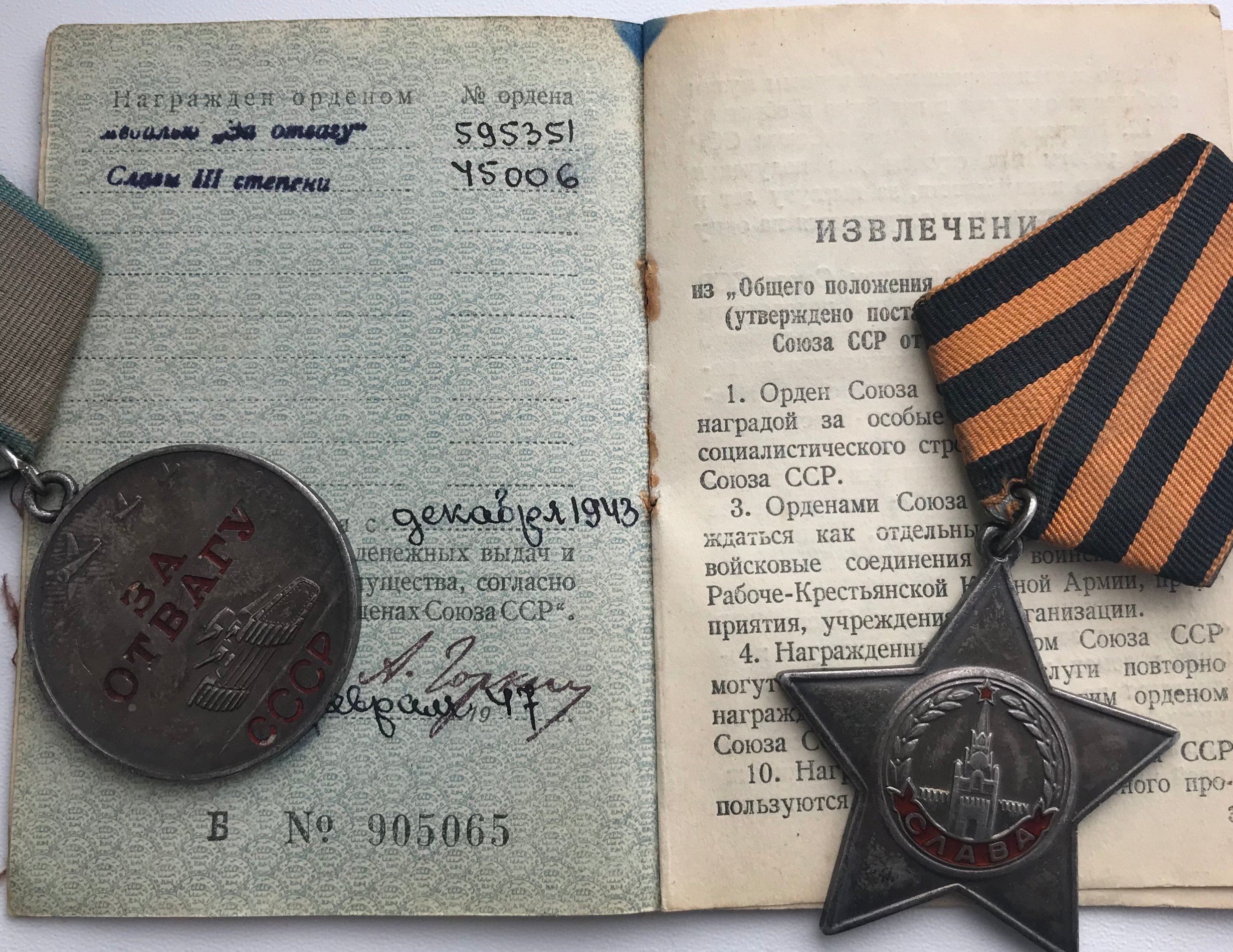 Kuulsuse III klassi orden nr 45006 ja Vapruse medal nr 595351