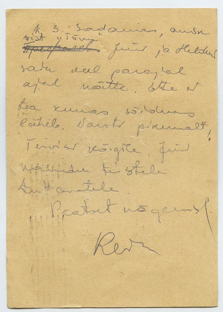 1941. aasta juulis Punaarmee ridadesse mobiliseeritud Rein Lepik saadab omastele kiiruga mõned read.