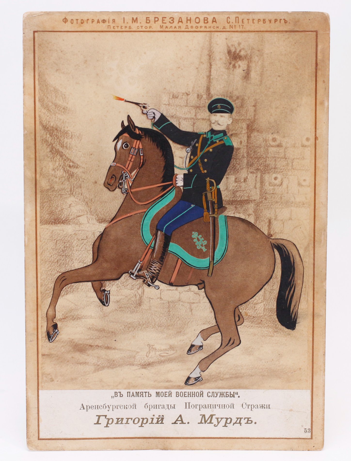 Piirivalve Üksikkorpuse 1. ringkonna Kuressaare (Arensburgi) brigaadi teenistuja Grigori Murd on tellinud Peterburis tegutsenud fotograafilt oma teenistusaja mälestuseks uhke suureformaadilise koloreeritud foto.