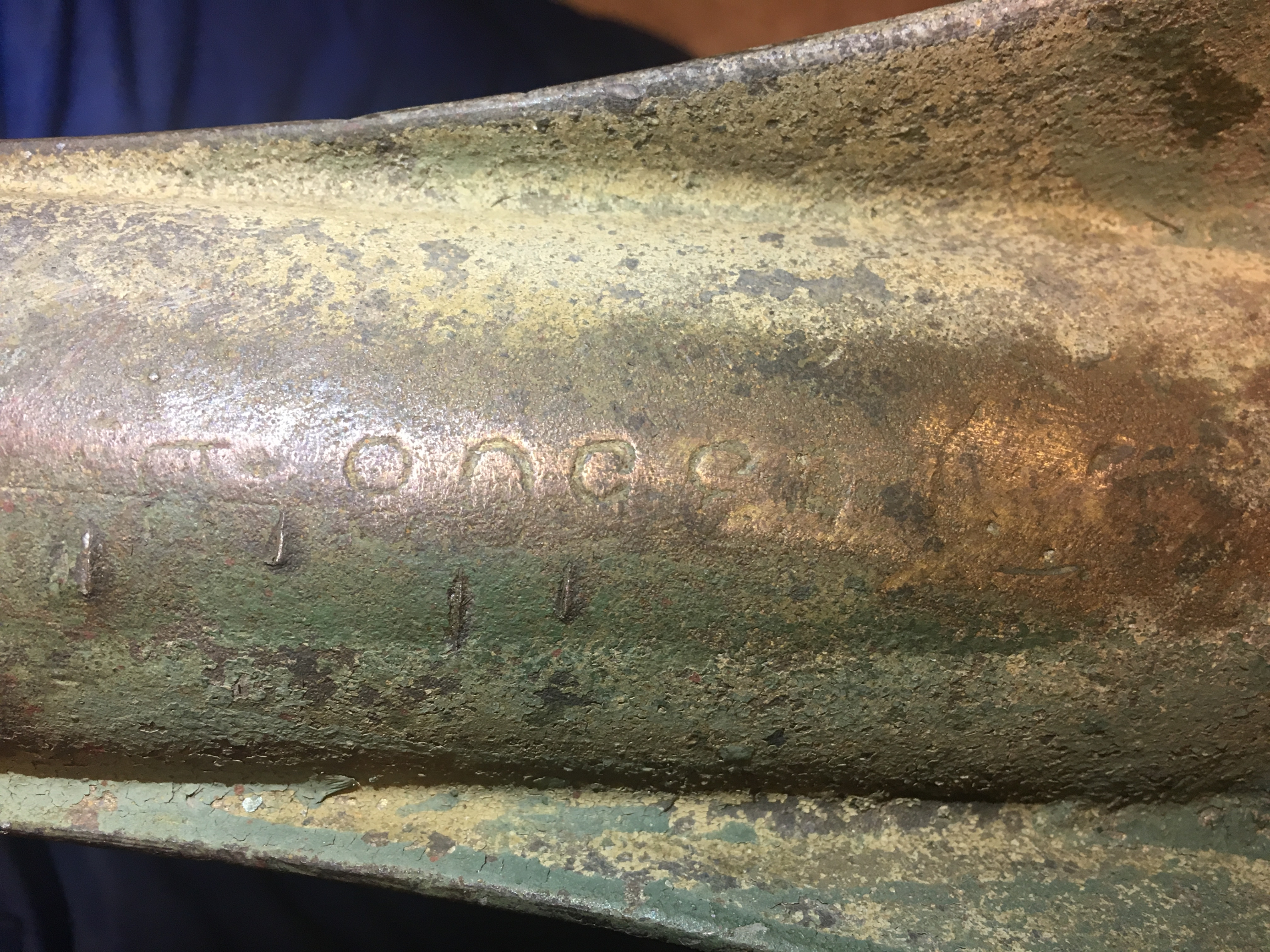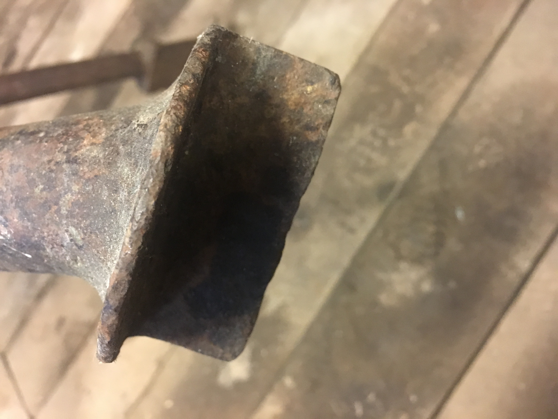 Kolmjalg meenutab hirmsasti ratsitud Vickersit. Kirve silm on parajalt õhuke, tahaks selle paigutada natuke varasemasse aega. 17-18. sajandi puutöö/lõhkumiskirves ehk. Kui võimalik, pista dest vette ja saada pilt muinsuskaitseametile.
