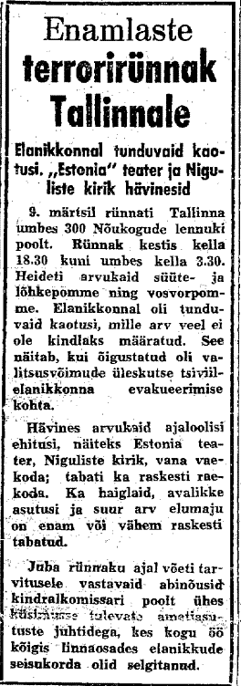 24./25. märtsi rünnakus hävis mitu maja kesklinnas Allika tänaval, hukkus helilooja Juhan Jürme.