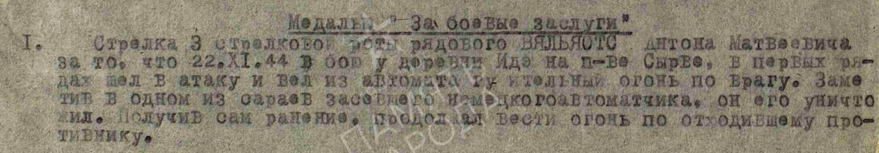 Üks tuligi veel välja, 249. laskurdiviisi 921. polgu reamees Anton Väljaots sai oma medali "Lahinguliste teenete eest" (2892022) Saaremaal, Sõrvel 22.11.1944 peetud lahingu eest. Oli kuulipildur ja olevat hävitanud sakslaste kuulipilduja, sealjuures ise haavata saades.