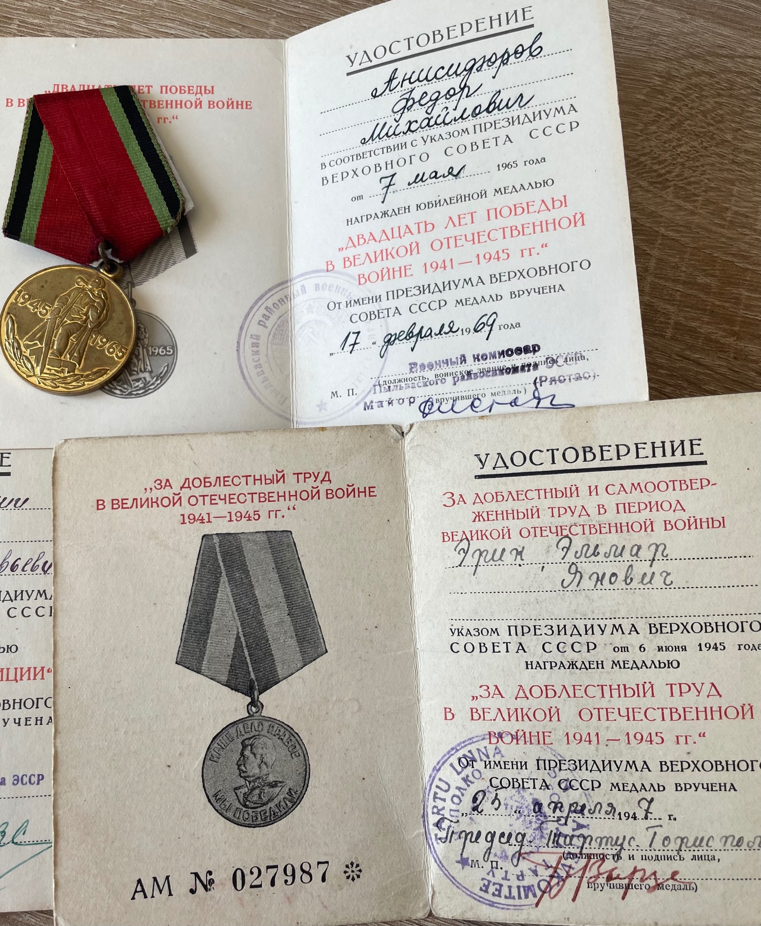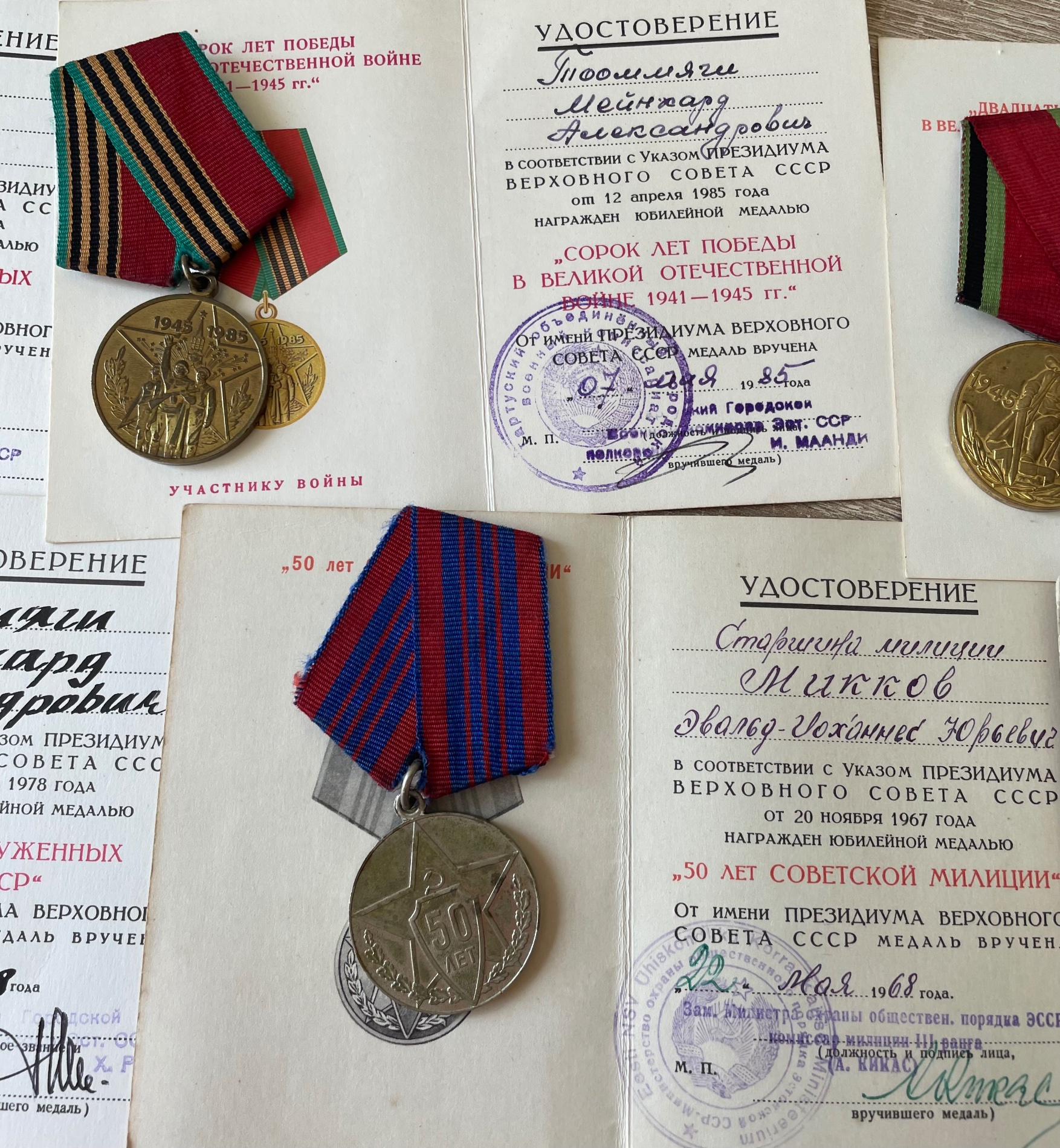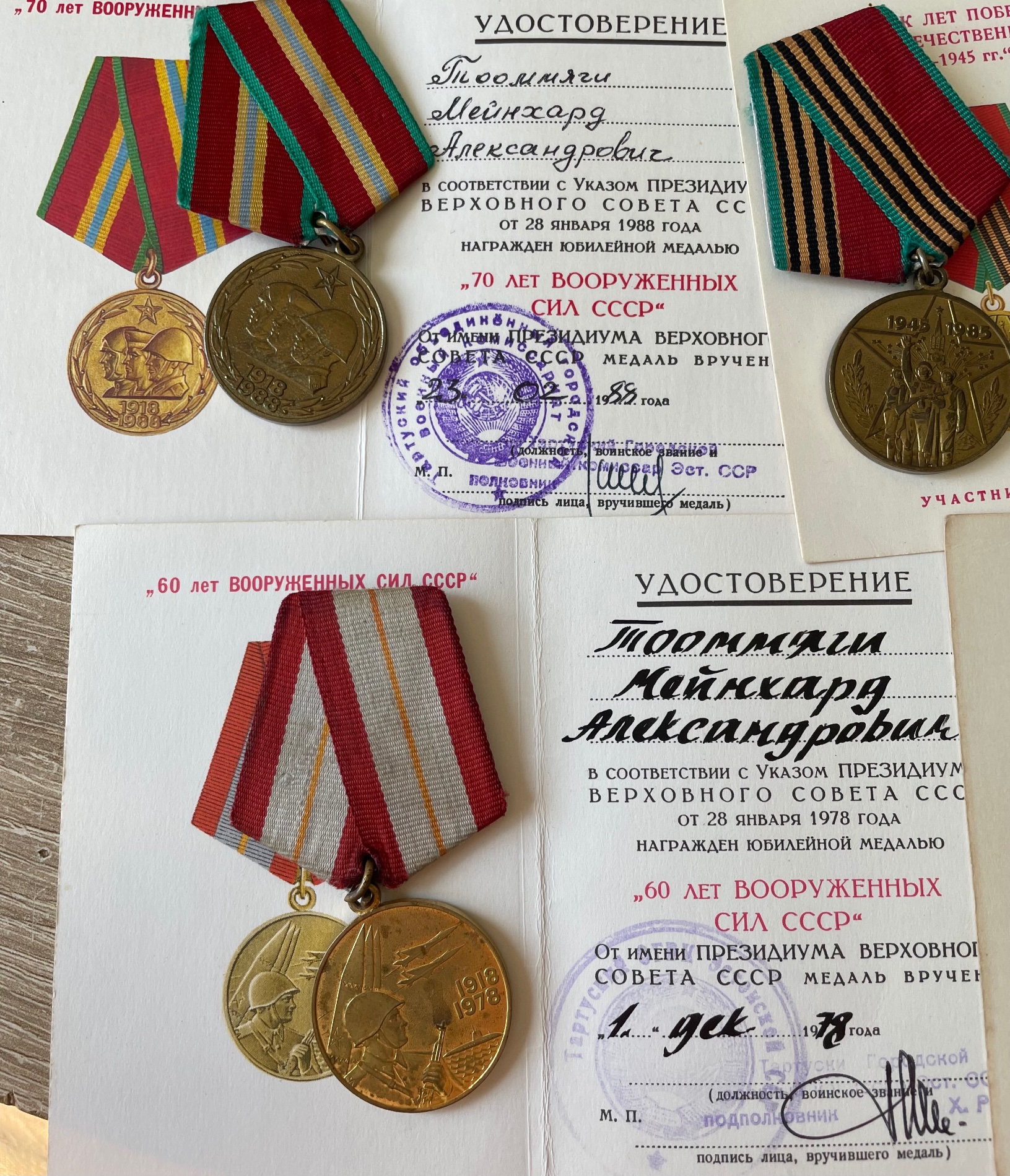 Õnnestus mul saad mõned dokumendid ja juubelimedalid, lisaks veel Lahiguteenete medal 865121. Korpuse numbrivahemikku see ei kuulu, kuid ostsin selle ühelt vanalt kogujalt kes väitis, et medal tulnud Eestist. Kunagi tellin dokumendid, eks siis saab teada…