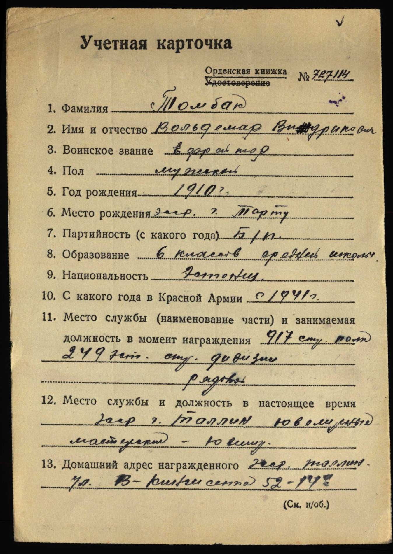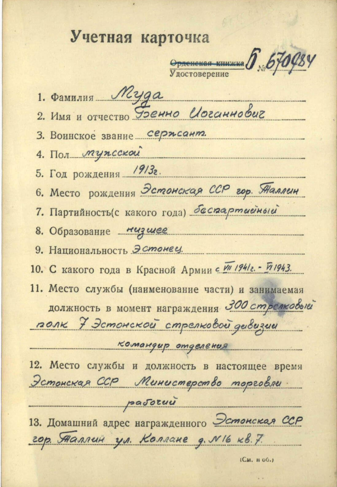 Oletasin ise ka, et sellist tunnistust pigem polnudki - ilmselt fikseeriti kaardiväelaseks saamine // märgi andmine vastava sissekandega punaarmeelase isiklikus raamatukeses...