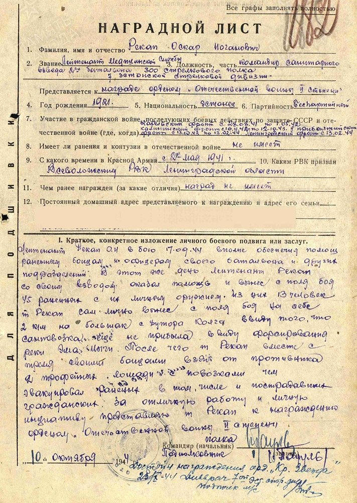 Huvitav, et Rekap esitati mõlemal juhul autasustamiseks Isamaasõja II klassi ordeniga, aga millegipärast teda selle vääriliseks ei peetud. Samas tean juhtumeid, kus poole väiksema arvu haavatute evakueerimise eest on autasustatud isegi näiteks Punalipu ordeniga...