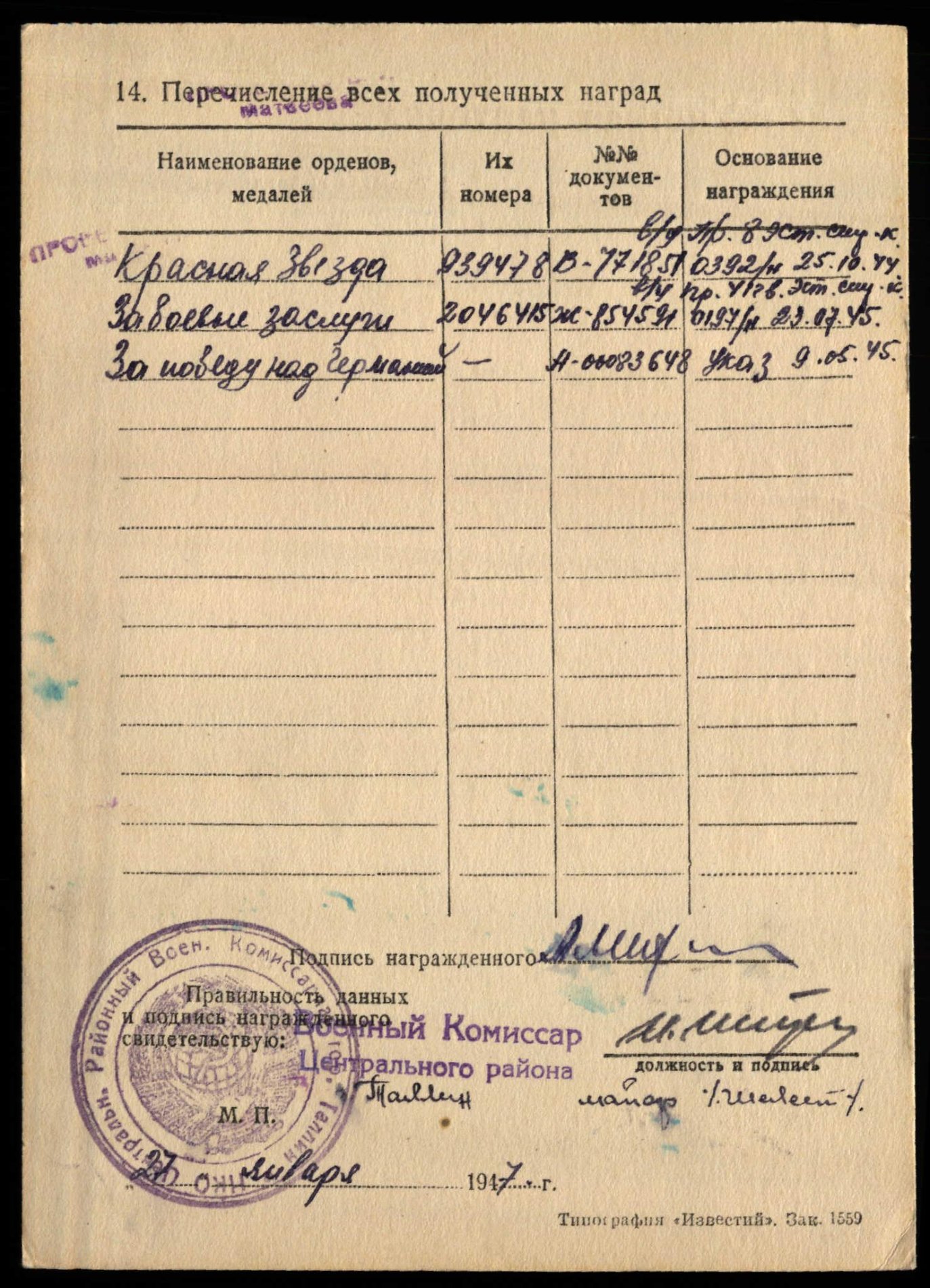Nüüd ka taust teada:tossom kirjutas: ↑K Apr 13, 2016 9:48 pm Ja täna saadud kena paar, kuulunud ühele inimesele, nime ei osatud küll kahjuks öelda. Varasem täht on numbriga 1480688 ja see sobib kenasti meie 1 480 *** andmebaasi. Hilisem on numbriga 3536526. Ilmselt tegu korpuse ohvitseriga, kes teenis punaarmee ridades ka mõnda aega pärast sõda. Hilisema Punatähega autasustamise ajaks on viiekümnendate aastate keskpaik.
