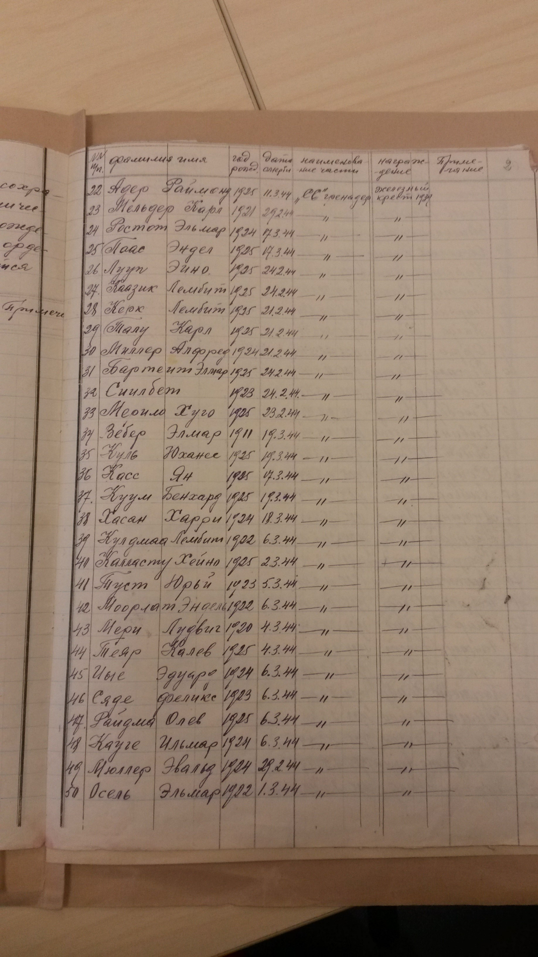 NKVD mehed kirjutasid Eesti meeste kalmistutel välja kõik andmed RR kandjate kohta. Sõdurid eraldi nimekirjades ,ohvitserid eraldi. Kalmistud lõhuti muidugi peale seda ära. Oskab keegi midagi arvata,et miks selliseid nimekirju vaja oli? Mehed olid ju surnud.