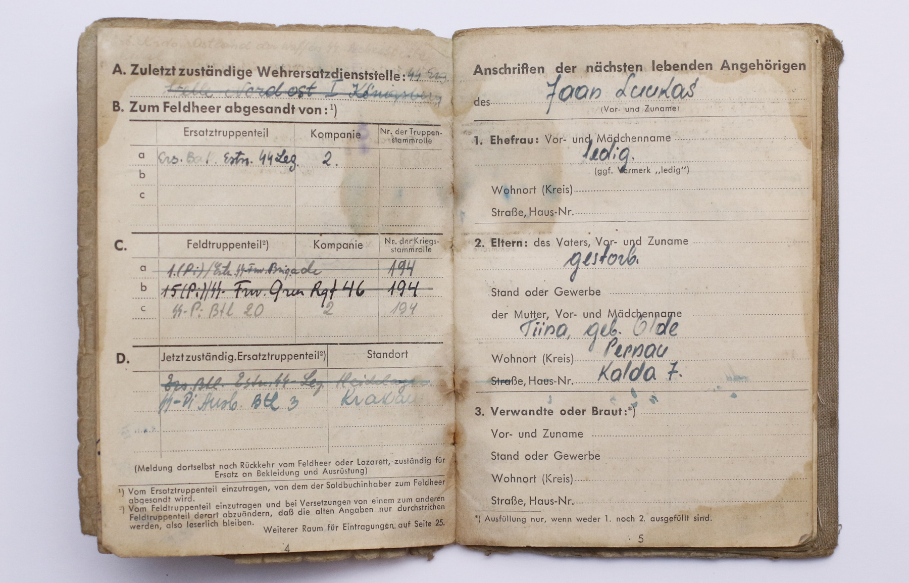 Dokumendid & foto leiti umbes kümmekond aastat tagasi Pärnumaalt kui hakati vana maja renoveerima, olid peidetud seina sisse. Üsna kindlasti üks kihvtimaid Soldbuch'e, mis tänase päeva seisuga mu kollektsioonis on.