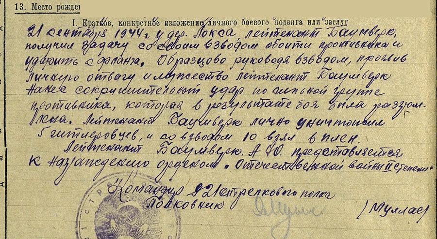 Üle pika aja midagigi teemasse... Laskurkorpuse 370. Kaardiväe Laskurpolgu kaardiväeleitnant Albert Baumverki Isamaasõja II klassi orden. Krasnojarski krais, Esto- Sadok-i külas sündinud eestlane, kelle sõjatee tõi kodumaale tagasi.