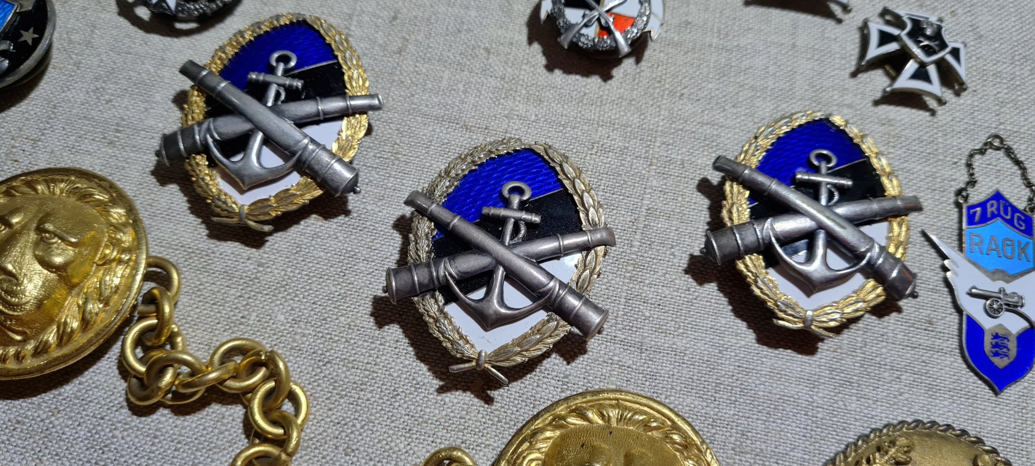 Merekindluste komendoride rinnamärgid, valmistatud Tallinnas Roman Tavast'i märgitöökojas.