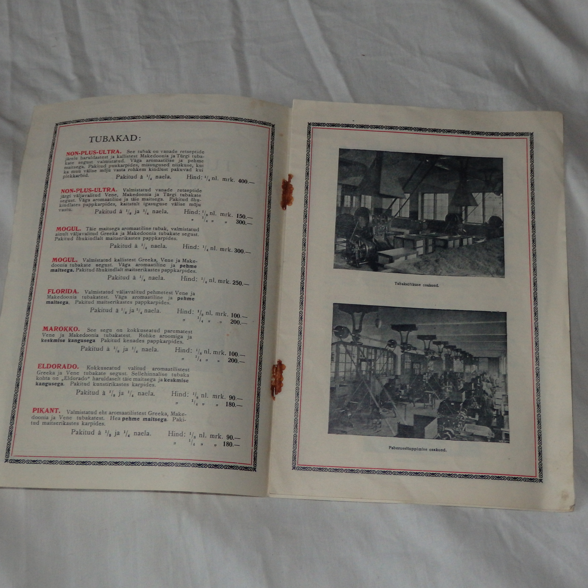 siin mõni näide 1936 a. hinnakirjast-
