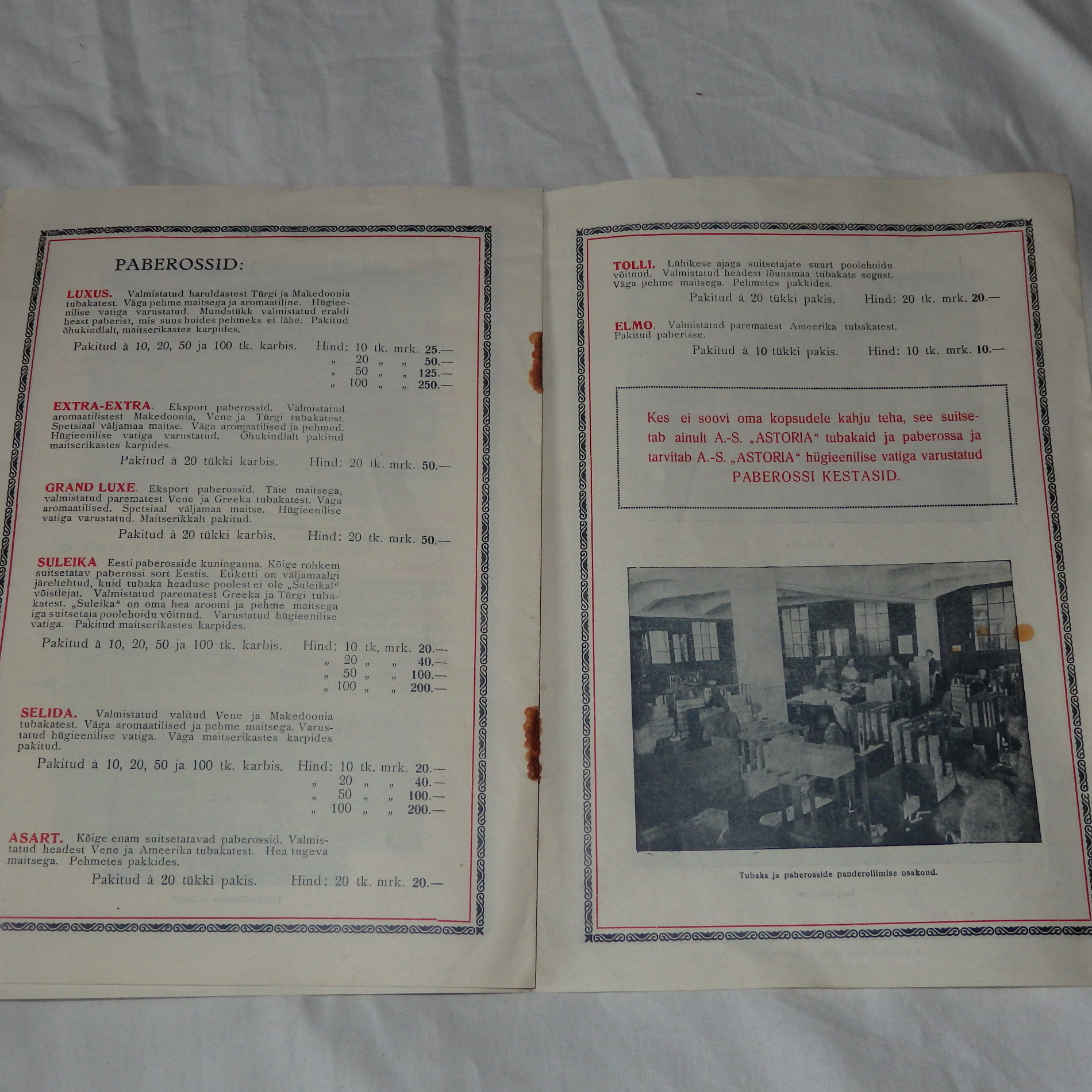 A/S Astoria tubakahinnad