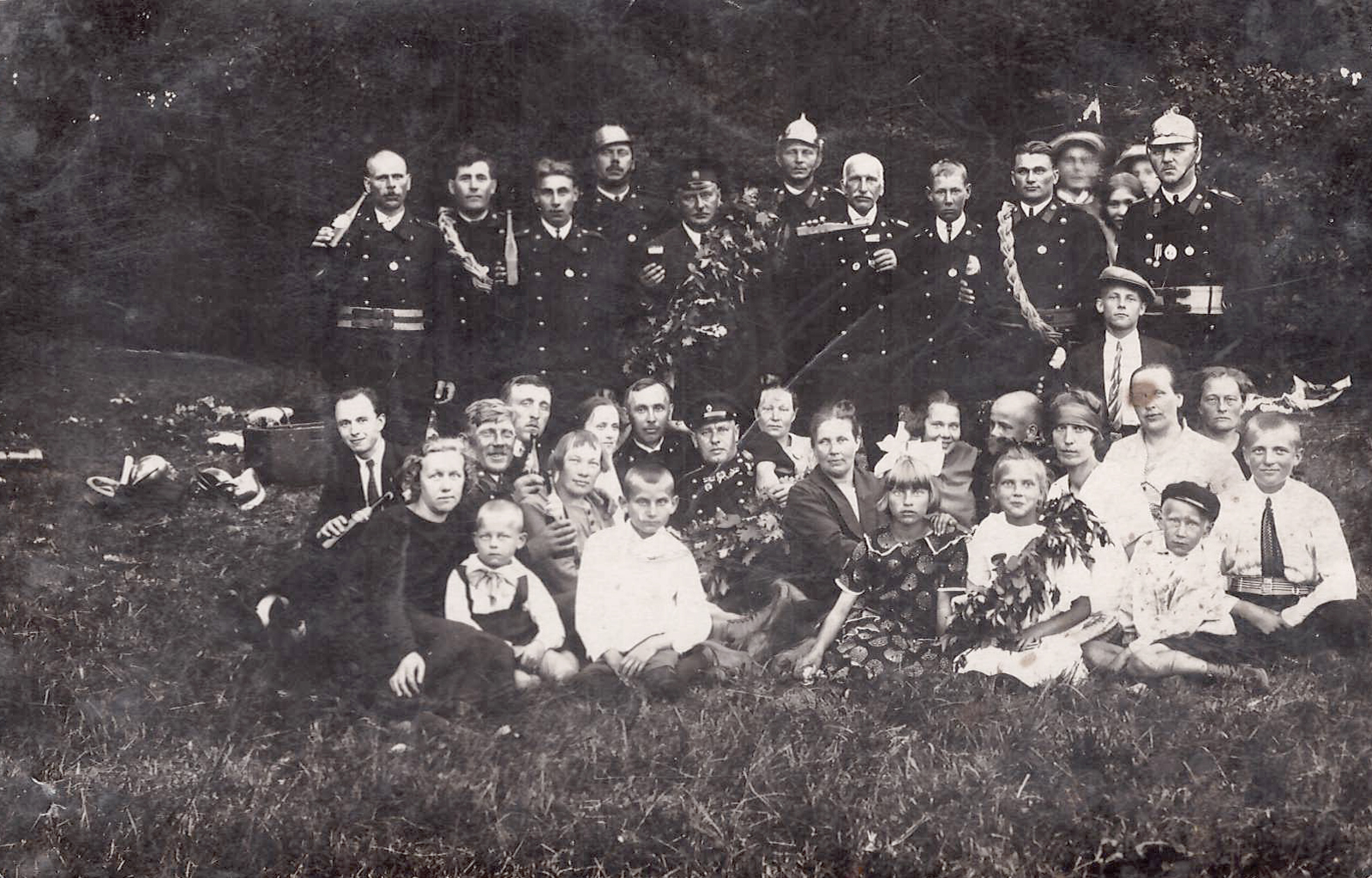 Nööp on vasakul pool, parempoolne puudub, samuti on otsa ees olnud mingi kokard, sees värvli vahel kiri: Lelle vabatahtlik tuletõrje