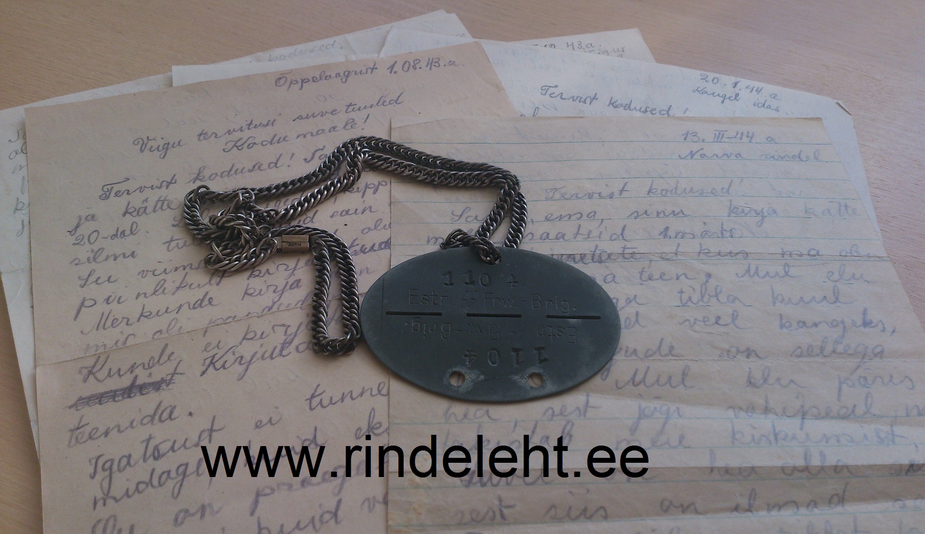 SS-sturmmann Enno Männiku (2.11.1926-4.5.1944) erkennungsmarke ja kirjad.