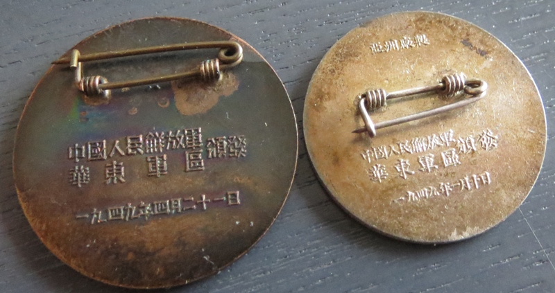 Lindiga medal on kirde Hiina vabastamise medal aastast 1948, püssidega medal on antud Yanzy jõe forsseerimise eest 1949 ja pruunikas medal on Huaihai kampaania medal 1949. aastast.