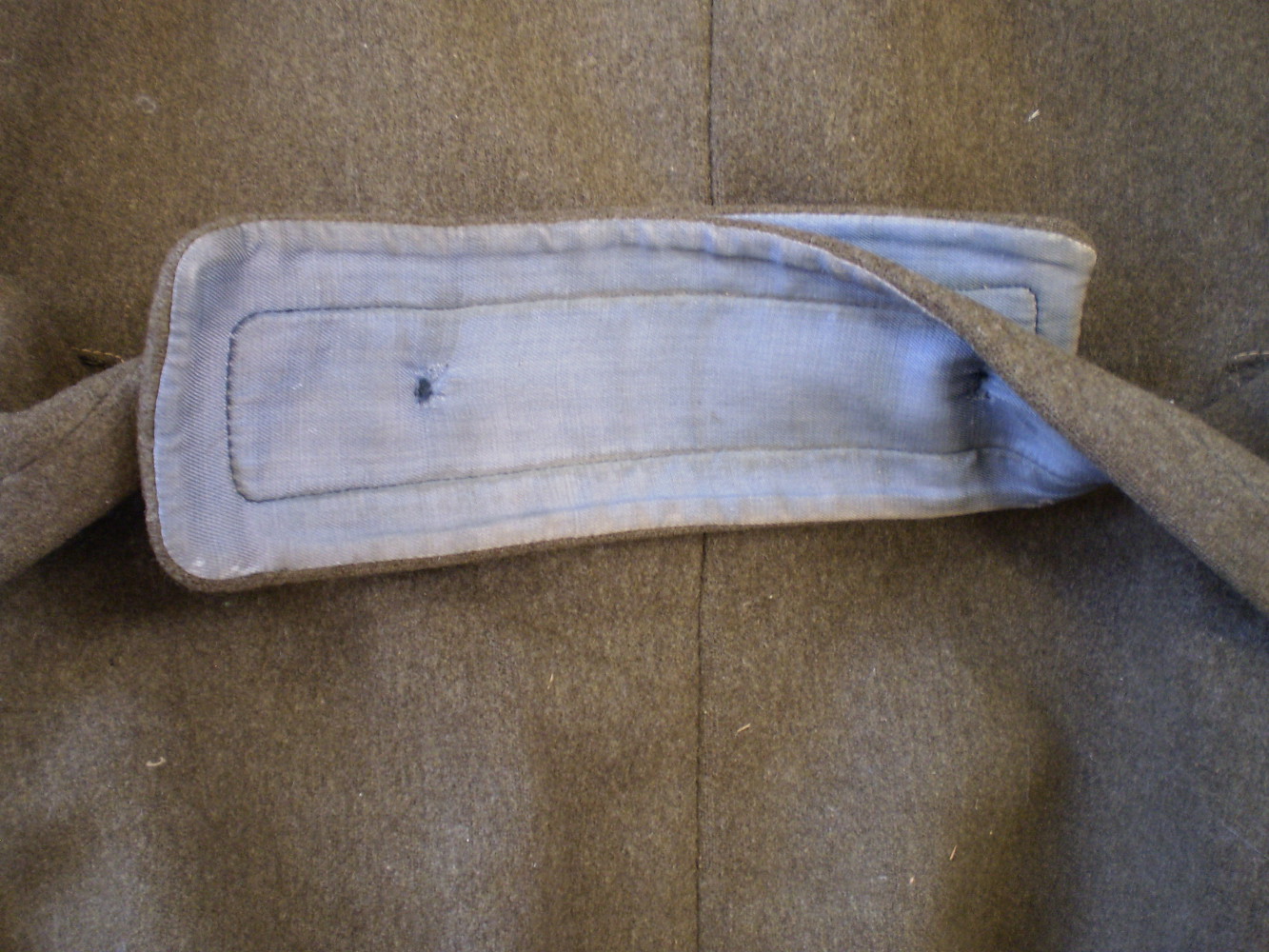 Samas võiks kasutada Territoriaalkorpuse komplektis. Põõna taga olevat samasugust läikivat sinist voodrit on näha olnud 40/41 a siin valmistatud Punaarmee riiete juures.