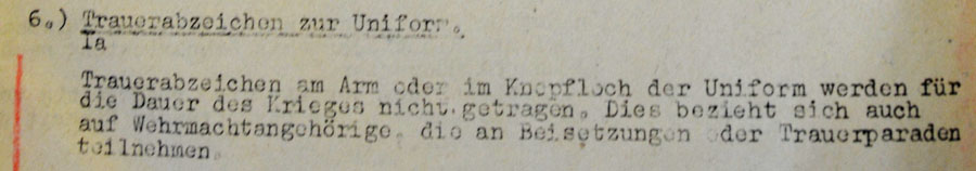 "Leinalintide kandmine vormikuue varrukal või nööpaugus on sõja ajal lubamatu. Kehtib ka sõjaväelaste kohta, kes võtavad osa matustest või leinarongkäikudest. "
