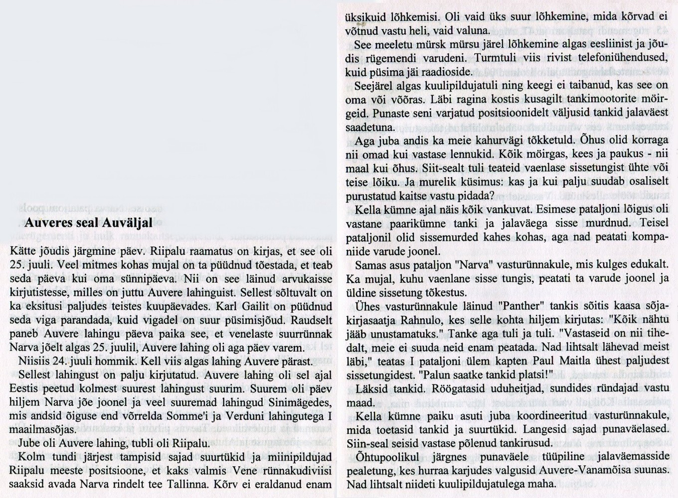 Voldemar Pinni lahingukirjeldus 1999. aastal ilmunud raamatust "Auvere sangar"