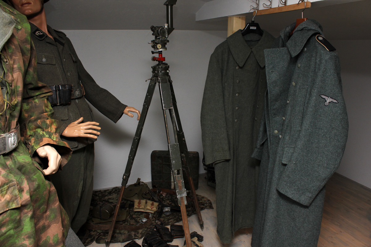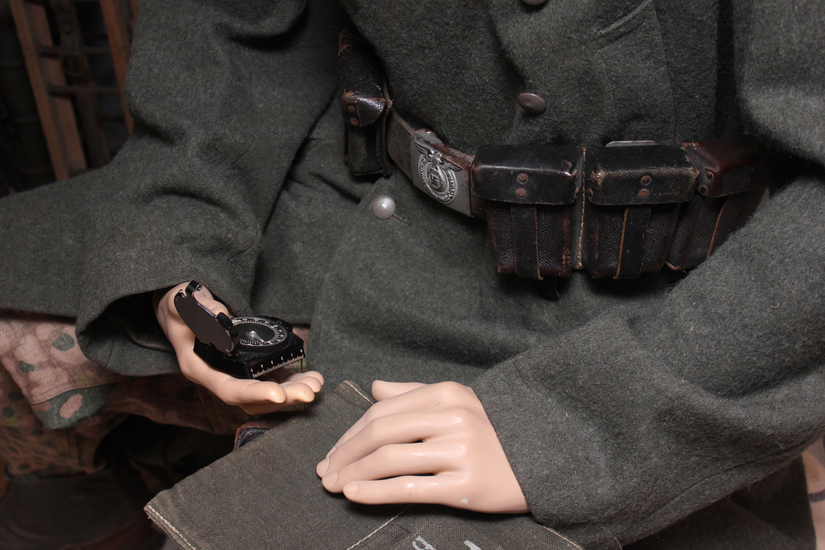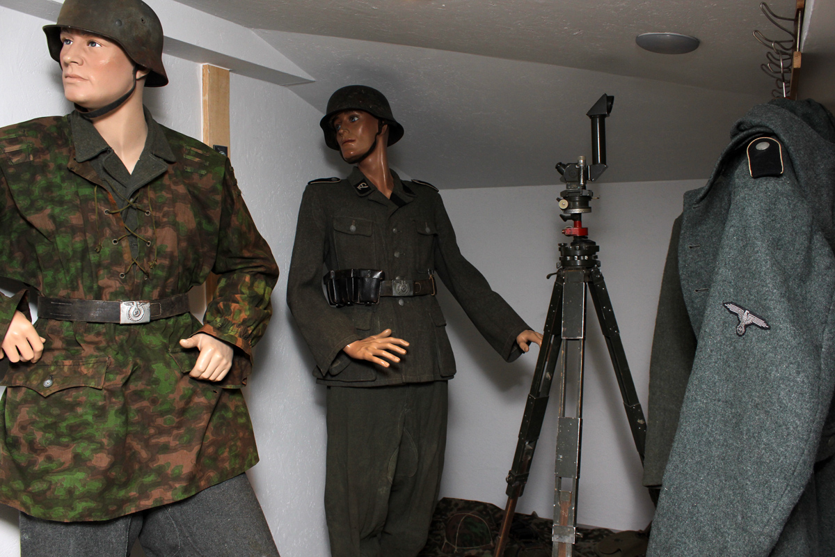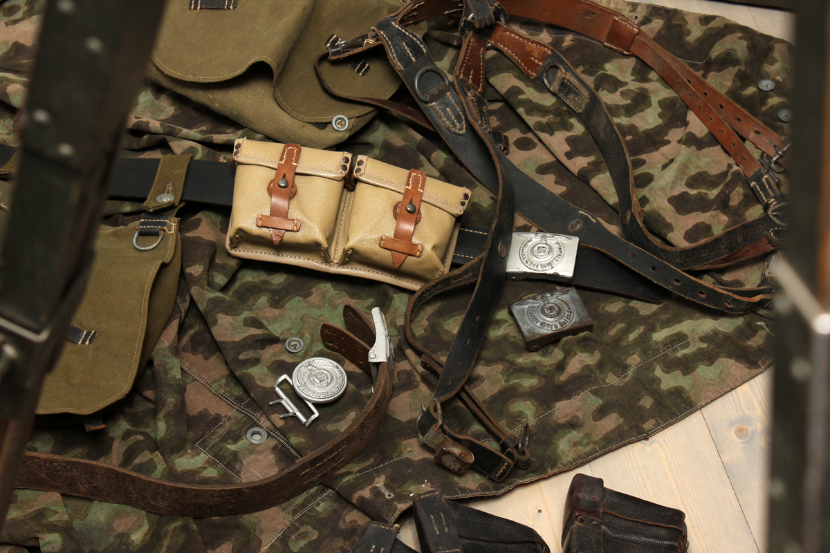 Tänase päeva ettevõtmine oli kolme ED sõduri riietamine. Laiguline Rauchtarnmuster maskeerimisjakk on leitud 90-ndate aastate alguses Raplamaalt - algne omanik on kahjuks teadmata, kiiver on pööninguleid Kergu lähedalt. Välihall vormikomplekt on Grenadier Leo Saare oma, kellest tegin 1,5 aastat tagasi omaette teema. L. Saare kuulus ED 47. rügemendi I pataljoni koosseisu ja tegi läbi Sinimägede lahingud. Peale venna langemist 30.07.1944 tuli koju ja deserteerus sõjaväest. Välihalli sõduri vöörihm on Pärnumaalt pärit Kare nimelisele mehe oma ja pandla omanik oli Grenadier Egon Saa. Kiiver on kuulunud ilmselt 29.07.1944 Sinimägedes langenud Michael Pelgeri nimelisele sakslasele. Pagunite ja kotkaga mantli omanik oli Albert Aavik, kelle kohta õde oskas ainult öelda, et vend oli Pitka löögiüksuses. Kahjuks ei ole arhiivinimekirjadest õnnestunud leida andmeid tema varasema teenistuskoha ja -käigu kohta. Halli parka ja pükstega komplektis on algne omanik teada ainult välimütsi ja see kuulus Häädemeeste kandist pärit Villi Grant'ile (arhiivinimekirjades Krant). Kaela seotud sall on arvatavasti hoopis ennesõjaaegne Punaarmee jagu.