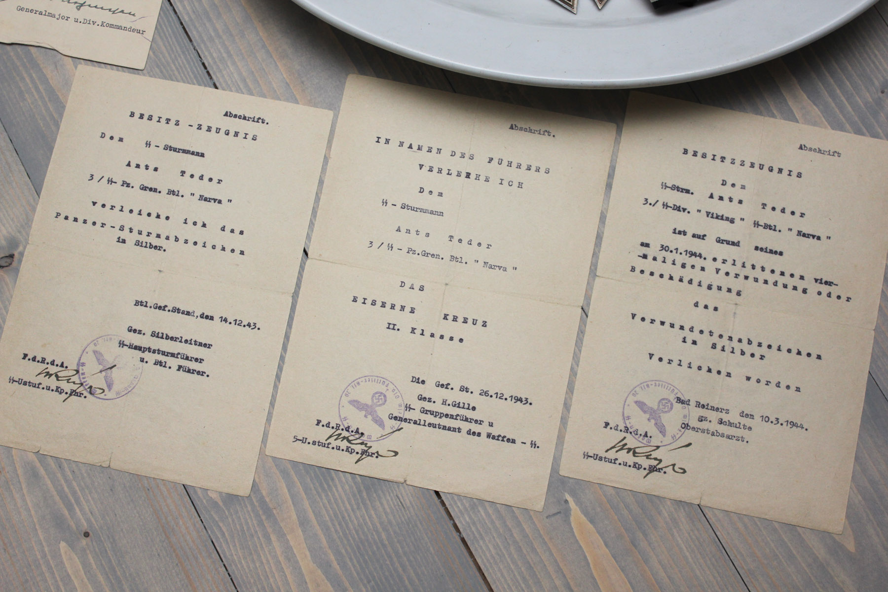 Et kolmanda riigi sõjaliste aumärkide värvigammas valitseb musta-punase-hõbedase kombinatsioon, panin ma ammu tähele..Mõned autasustamispaberid ja autasud ...