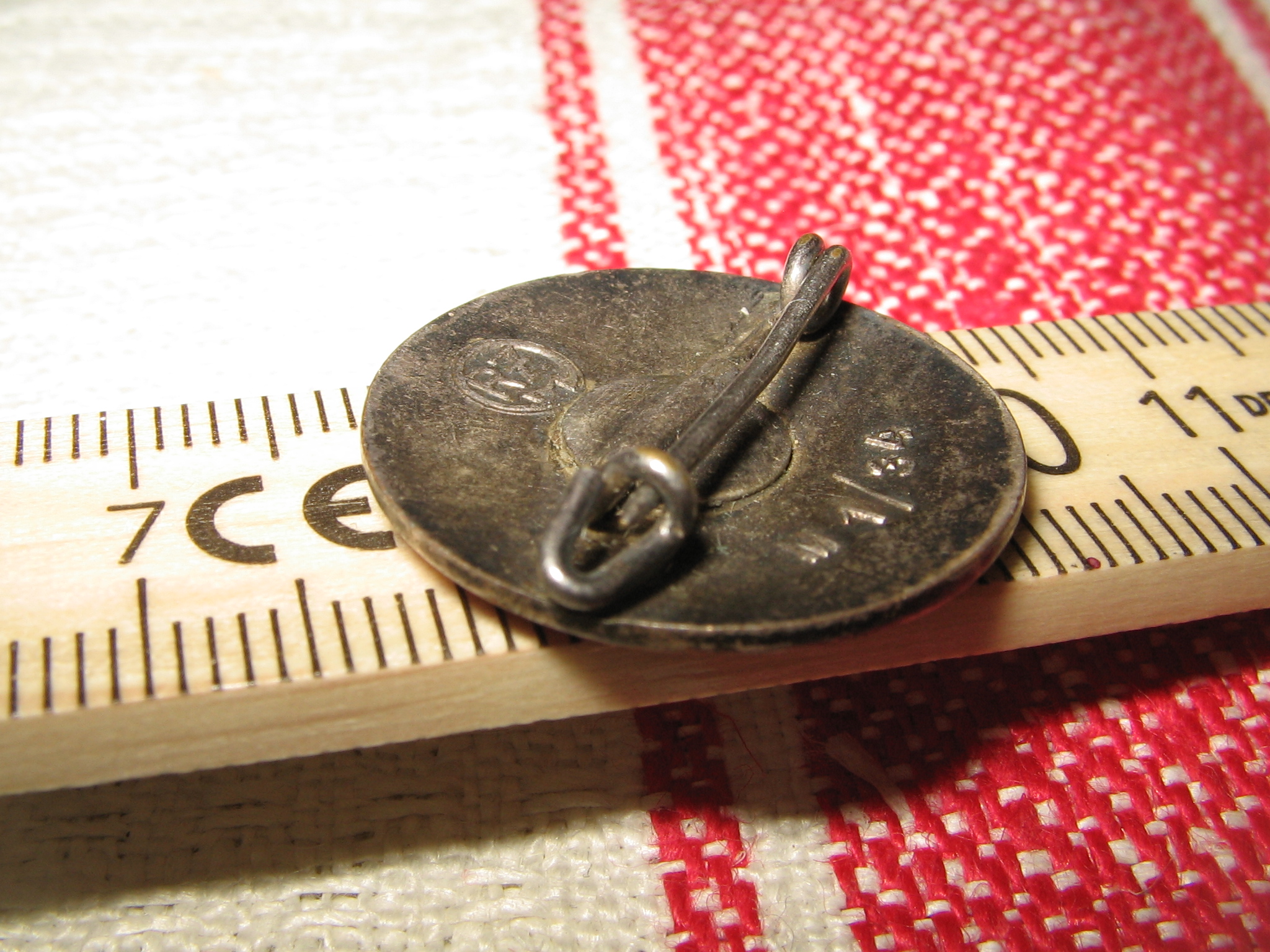 Märk on varasest RZM-perioodist. See on juba mitmes selline märk, millel on nõel deformeerunud ja lapikuks vajutatud. Mulle tundub, et selline deformatsioon on neil märkidel tehtud meelega, et oleks mugavam märki kanda. Samal eesmärgil on arvatavasti eemaldatud ka nõela tipp minu poolt varem postitatud GES.GESCH markeeringuga märgil. Kas keegi on midagi sellist ka enda märkide puhul täheldanud?