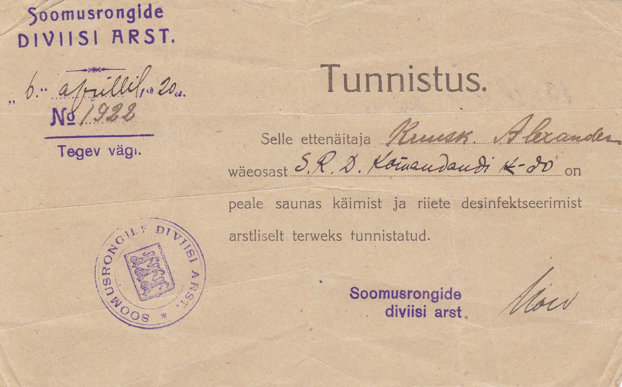 Soomusronglaste sauna köeti ikka täiega :D Tõend, mis antud järgmisel päeval saunas käinud mehele.