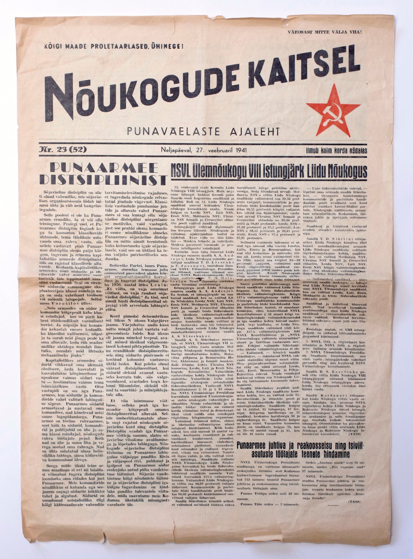 Esimest korda elus sattus kätte selline ajaleht, mida levitati Eesti sõjaväest moodustatud Punaarmee 22. Eesti territoriaalses laskurkorpuses. Ajalehe üleval nurgas on karm käsk ajalehte mitte väeosast välja viia!