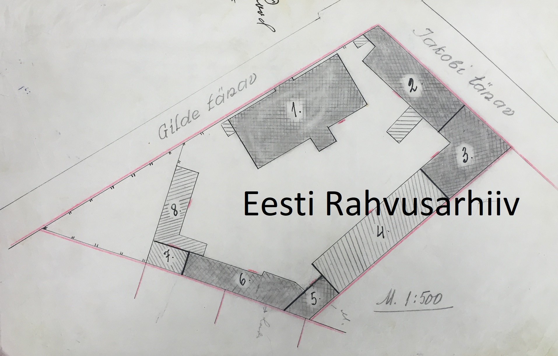 Aadressideks olid Gildi 2 ja Gildi 4 (nimekujusid leiab ka Gilde, Kilde). Pakun, et Gildi 2 hävines 1944. aasta märtsipommitamises. Tänaseni on säilinud Gildi 4 paekivihooned Gildi 4, google link