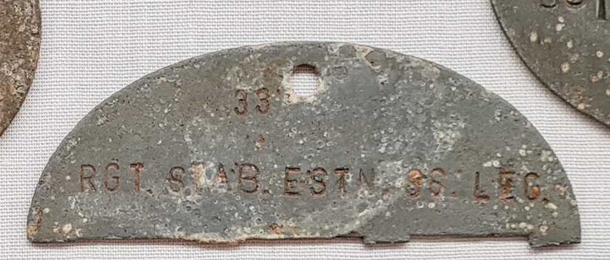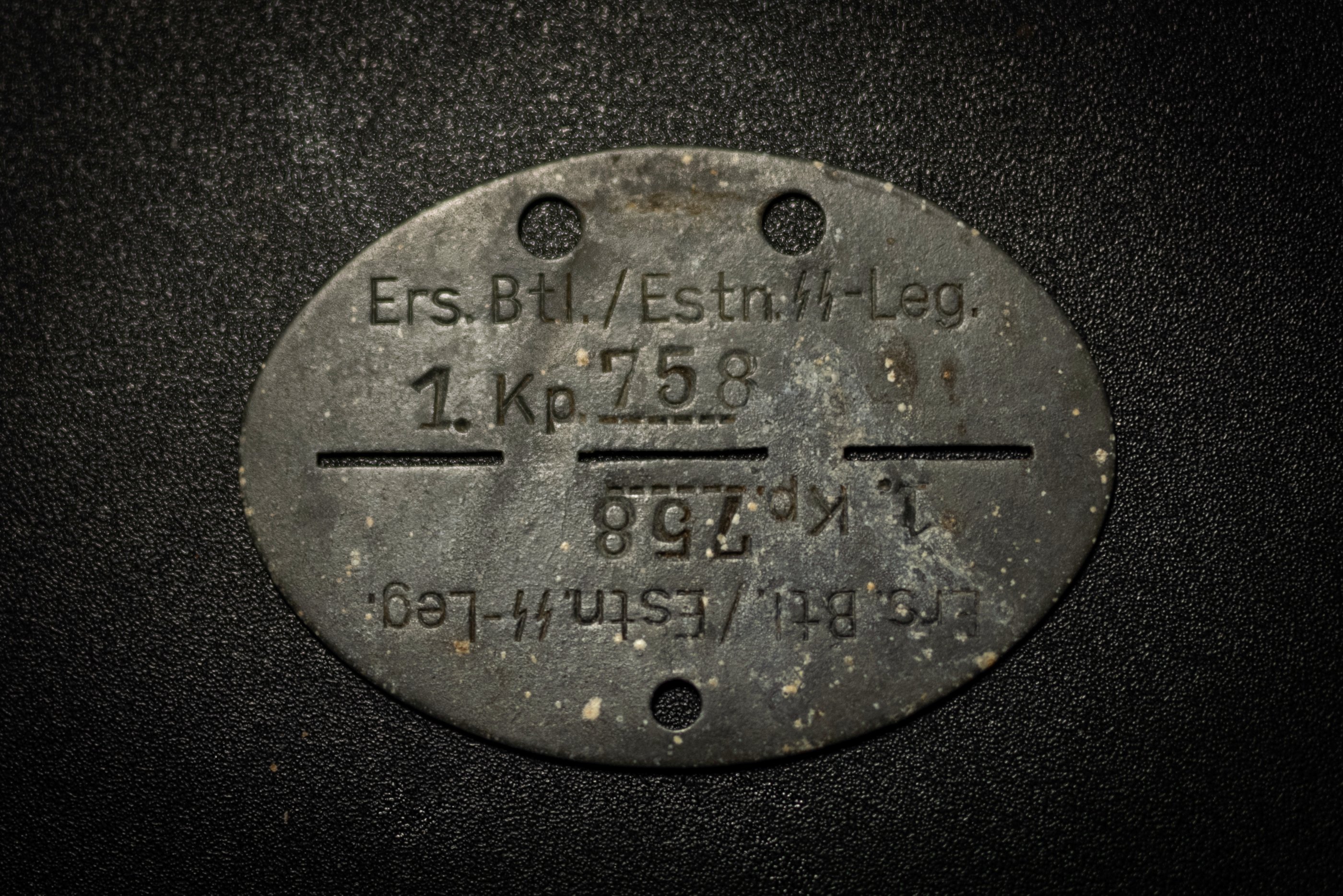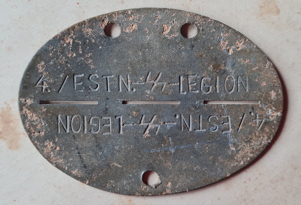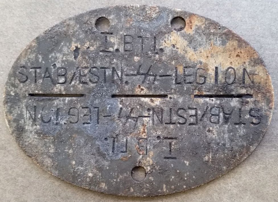 Esimese grupi moodustavad LEGION kirjaga žetoonid, millistest suurema osa jõudis Eesti Leegionist eraldatud ja "Wiking" diviisi koosseisu liidetud pataljon "Narva" meeste kaela. Vähesel arvul on neid näha ka eelpool nimetatud brigaadi / diviisi meeste juures aga neid on tõesti vähe. Ukrainas, kus võitles "Narva" pataljon ja paljud mehed otsa said on neid aastate jooksul ikka leitud. Selles grupis on minu teadmist mööda seitse erineva kirjaga žetooni - kõik on löödud ühesuguste tähtedega ja kõigil on numbrid tagumisel küljel. Grupi igal žetoonil / allüksusel oli oma numeratsioon ehk siis kõik algasid loendamist 1'st.