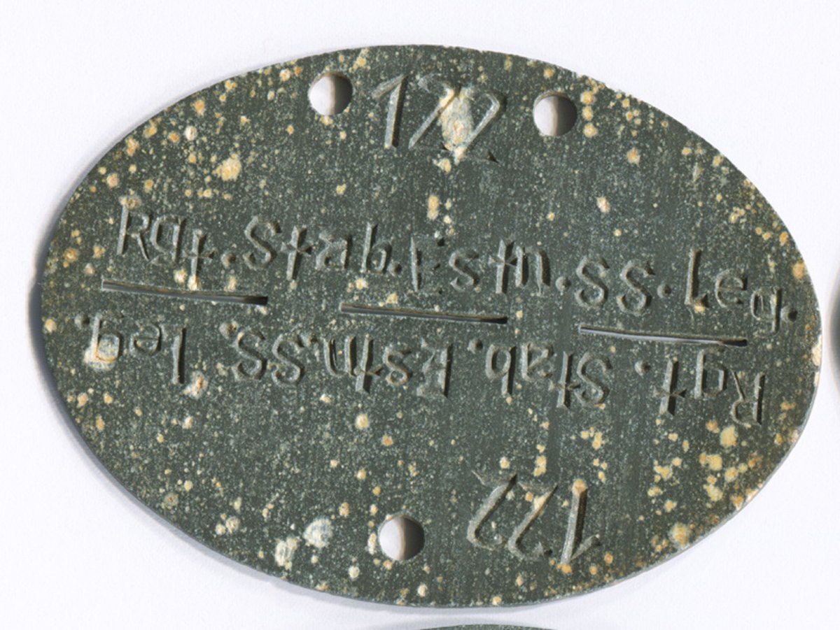Ajateljel jägmine žetoon, mis käiku võeti oli ühesuguse kirjega aga kahte tüüpi tähekujudega - Rgt.Stab.Estn.SS.Leg. ja RGT.STAB.ESTN.SS.LEG. ja eelnevalt nimetatud arhiivimaterjalid andsid just sellist tüüpi žetoonide kohta huvitavat teavet. 19 aastat tagasi sain kümmekond sellist žetooni, mis olid Poolast, Debica (Heidelager) väljaõppelaagri territooriumilt välja kaevatud. Nende hulgas kõige väiksem isikunumber oli vist 103 - enamik olid vist vahemikust 120-130. Kuna need seal laagrist sedasi korraga leiti siis olid need kindlasti välja jagamata jäänud ja kusagile prügiauku visatud. Kaotuste nimekirjas oli kõige suurem number 68 ja see tähendab, et välja jagatud ja jagamata žetoonide piir on kusagil 68 ja 103 vahel. Neid dokumente uurides tegin aga ühe eriti huvitava avastuse - nimelt ohvitseridele välja antud Erkennungsmarkedele oli isikunumbri kõrvale löödud suur F täht - F nagu Führer.
