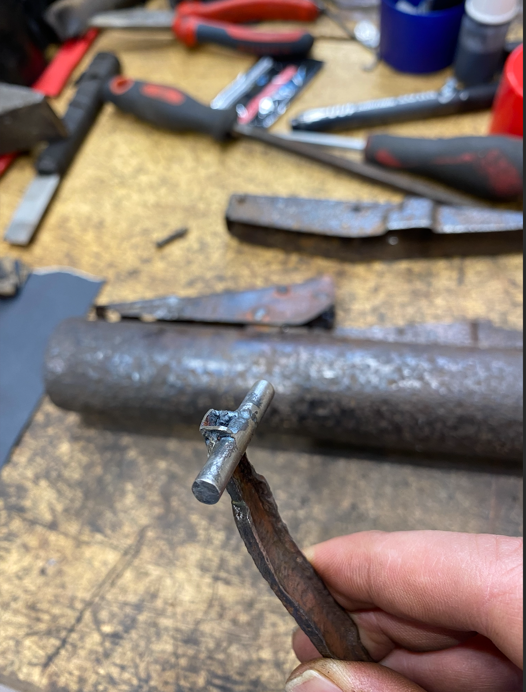 Pästiku kaitseriiv oli roostetanud ja otsas oleva tihvti osa kadunud,see sai asendatud terasest 6mm tükiga ja kinni punktitud.