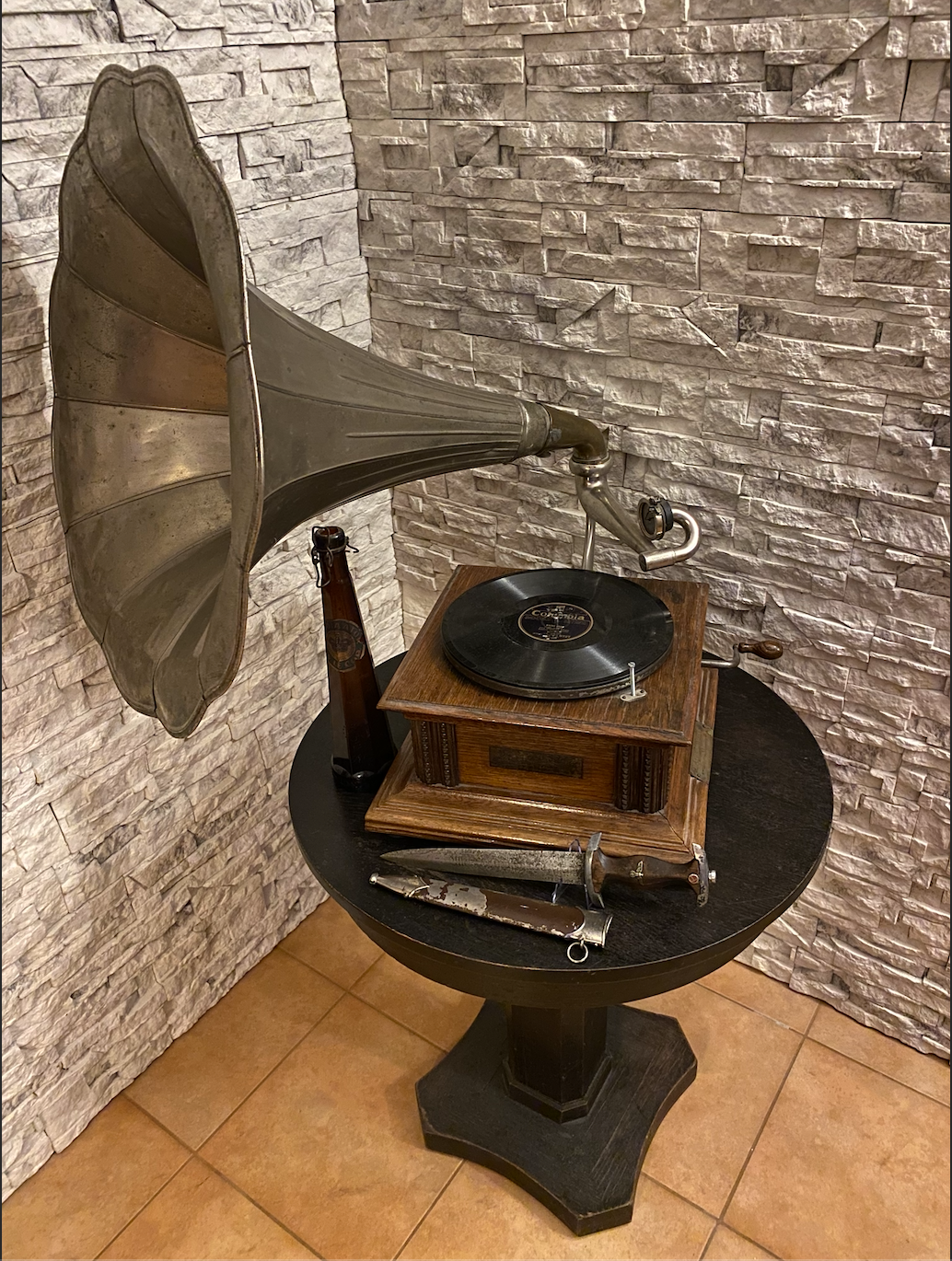 Minu isa väiksena mängis sama grammofoni pasunaga lakas,eks seal heina all vedelesid ka teised osad.Vanemaks sai,vaatas et tore asi ja taastas nii palju ära,et oleks mängitav jälle.Hetke seisuga on järg minu käes,ilus ese mul aastaid nurka kaunistamas ja jätkuvalt tegelen,et leida viimased puuduvad osad.
