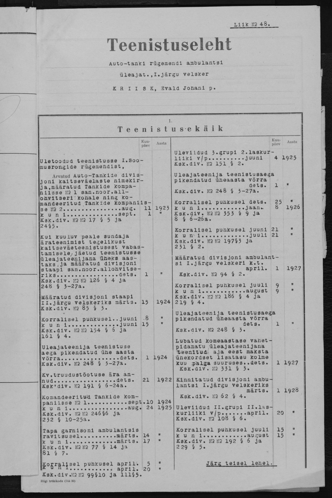 20ndatel teenis Auto-tanki rügemendis velsker Evald Kriisk.