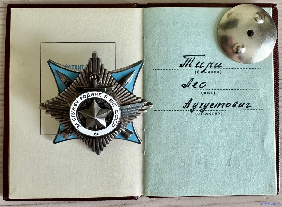 Re: Leo Tiri, III kl. ordeni ''Kodumaa teenimise eest Nõukogude liidu relvajõudes'' kavaler.