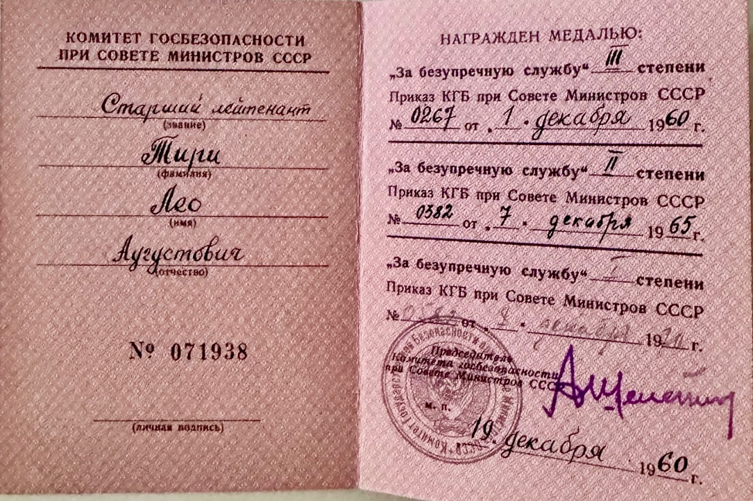 Leo Tiri teenis aastaid KGB-s ja pälvis kõik kolm teenistusmedalit.