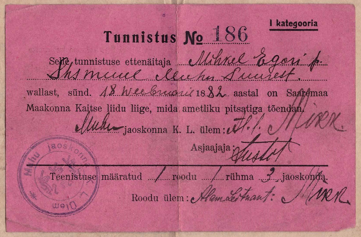 KL Saaremaa maleva pagunimärk.