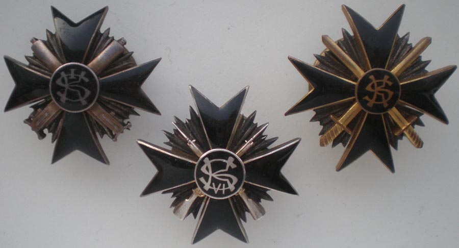 panen üles oma suure uhkuse - 3 SK kadetiklassi lõpumärki. ÕA ja viimase malli (mõõkadega) märk on Tavasti mutriga, insenerklassi (tehniliseväe?) risti tegija on H. Kiiwer. Tehnoloogiliselt on kaks vasakpoolset sarnased, suuruselt ja kujult ka. ÕA medaljon ei ole peale joodetud vaid osa risti korpusest, Kiiweri omal joodetud, sama ka mõõkadega ristil.