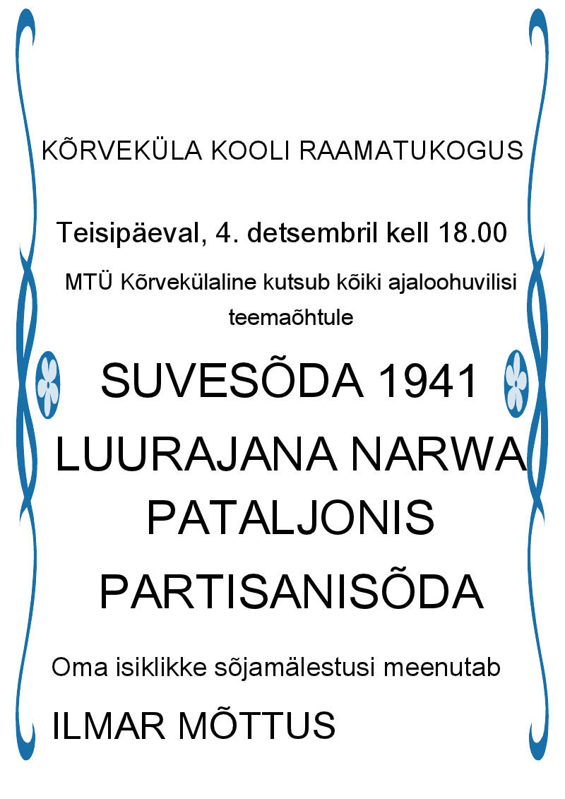 Vähemalt hr. Ilmar Mõttus-el ei olnud midagi selle vastu, et ka mitte kohalviibijad saaksid ettekandest osa. Uudishimu tekitamiseks pealinna rahvale. Teises loengus päris pikalt rääkis metsavennaks olekust Tallinna lähedal Havijõe(vist ikka oli?) ääres. :D Proovin lähiajal uscha-le materjalid ära saata.