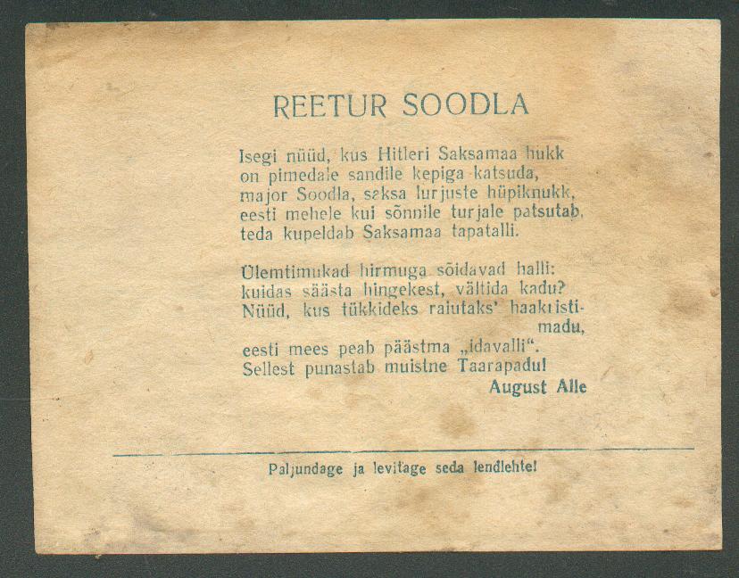Re: Reetur Soodla- luuletus August Allelt. Huvitav lendleht