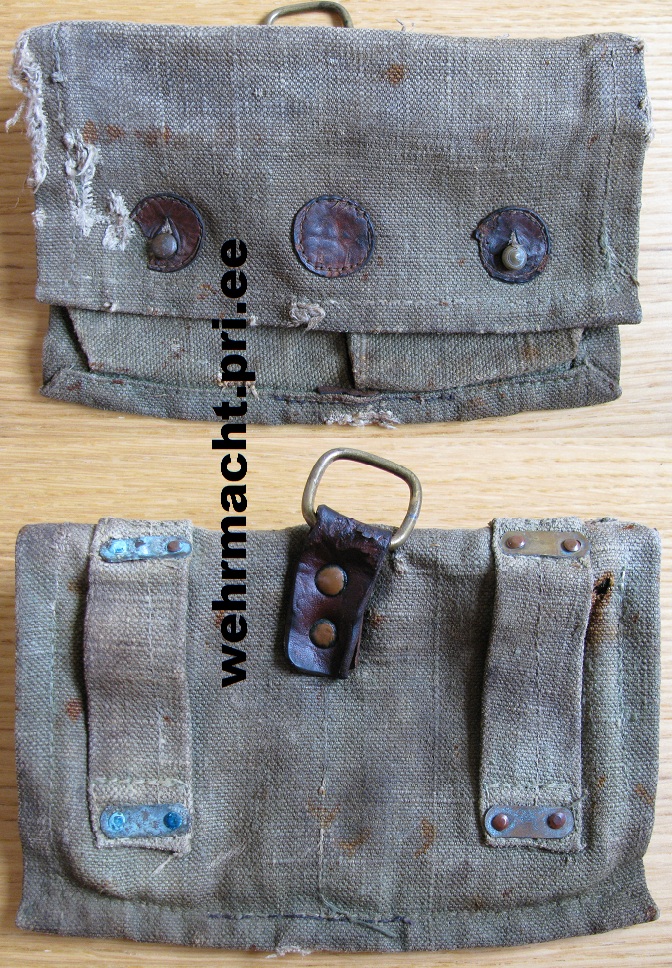 Siin Saksa päritolu padrunitasku, mis ilmselt oli kasutusel Kaitseliidus. Tasku sees ovaalne markeering, millest enam aru ei saa...
