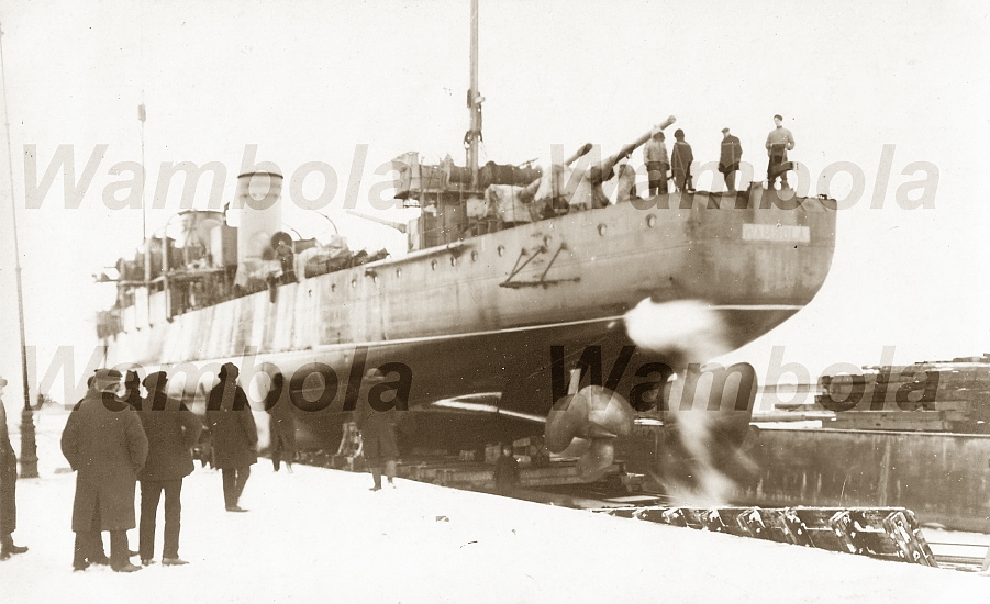"Vambola" oli ehitatud Peterburis Putilovi laevatehases 1915.a., saades tsaariaegseks nimeks "Kapitan 2. ranga Kingsbergen". Laeva pikkus oli 314 jalga, laius 30,5 jalga ja süvis 9,5 jalga. Masinad võimsusega 30000 hj. võimaldasid saavutada kiiruse 30 sõlme ja relvastuseks oli tal 4 neljatollise kaliibriga suurtükki, 1 seniitkahur ja 9 torpeedotoru.