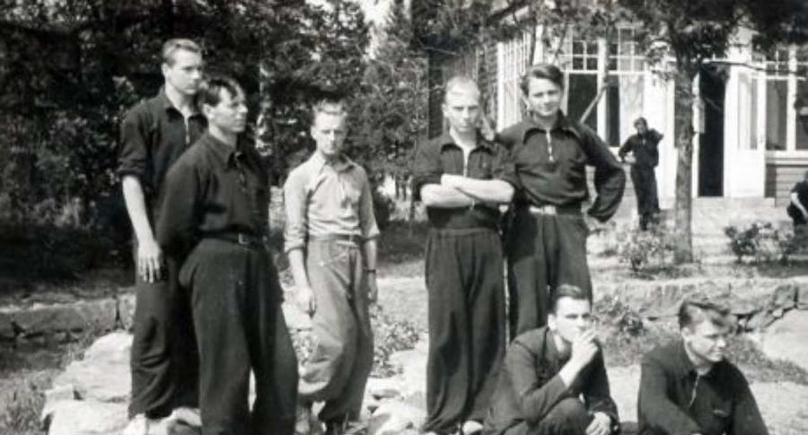 Tsiviilriietes Erna grupi liikmed 1941. aastal Staffanil väljaõppel.
