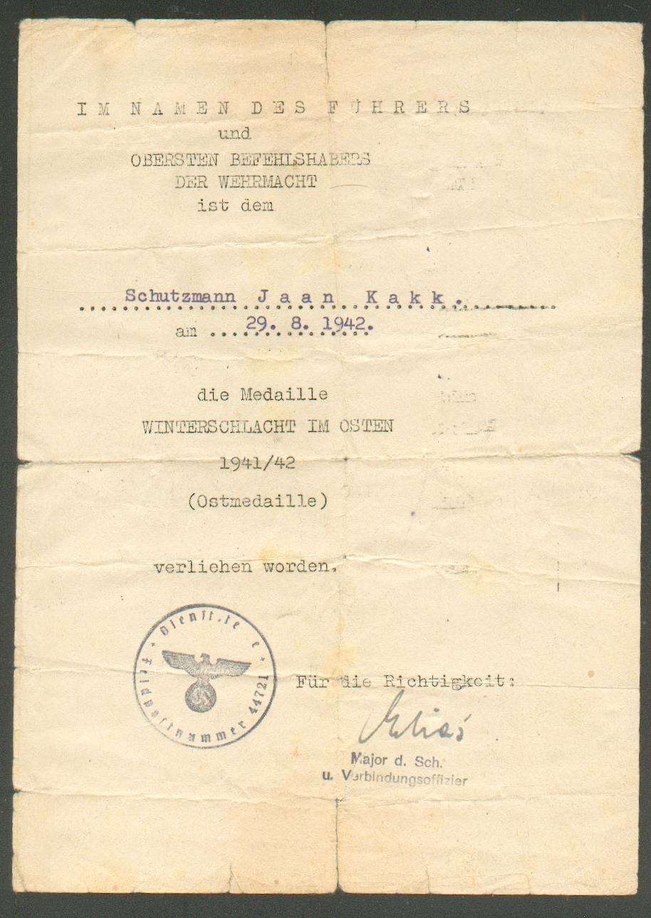 Kaks extra lahedat liistu, mis seovad 1941/42 talvekampaania medali 1.MS-ga