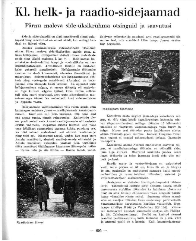 Uuri-otsi Toe Nõmmi kirjutisi, kusagil oli tal artikkel Eesti sõjaväe sidetehnikast ("Tehnika Maailm"??)