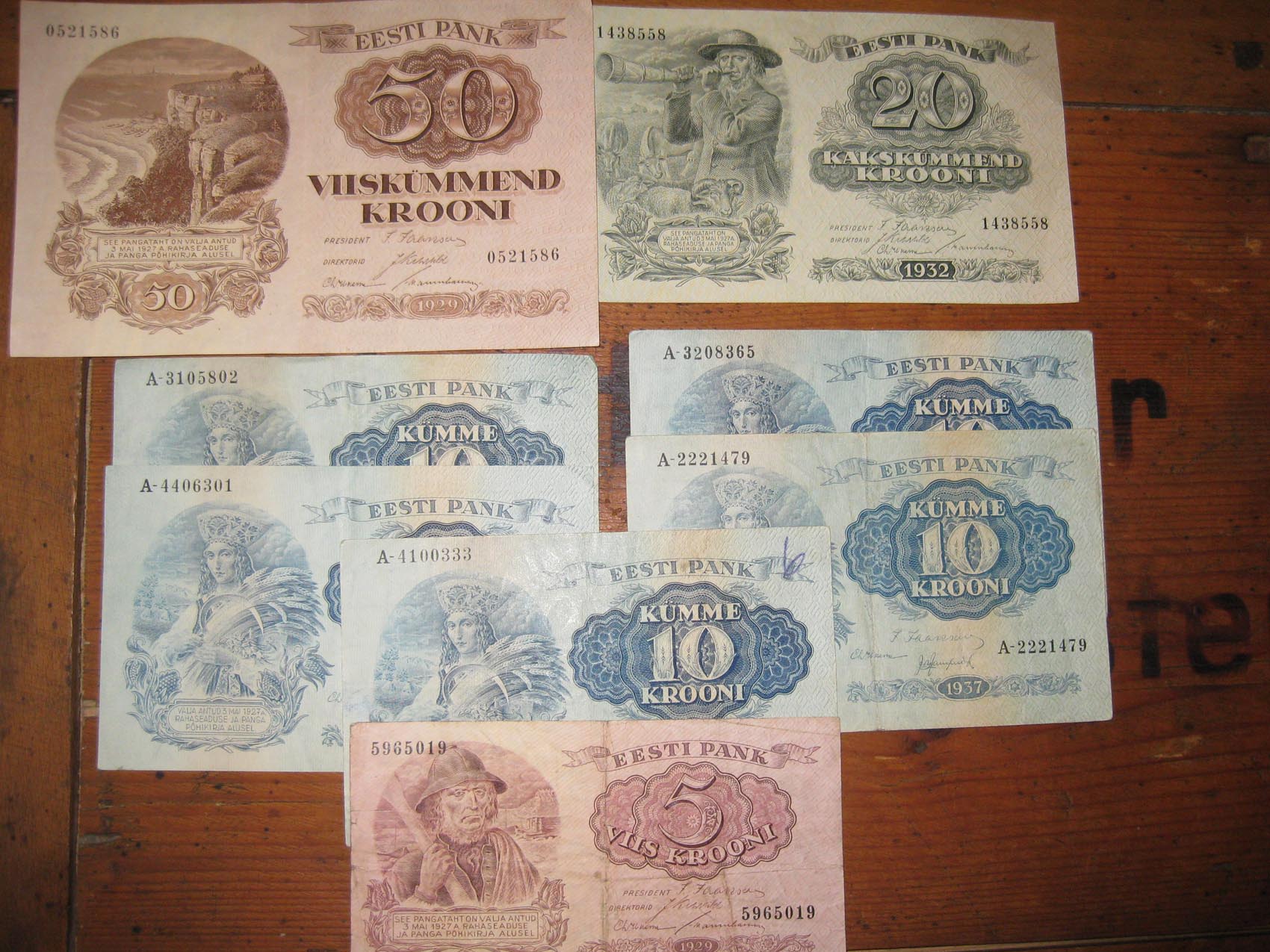 Eesti Wabariigi aegsed rahad 50 eur (50 ja 20 kroonine UNC, 50 kroonisel keskel murdekoht, 5 kroonine kehvas seisus. MÜÜDUD.