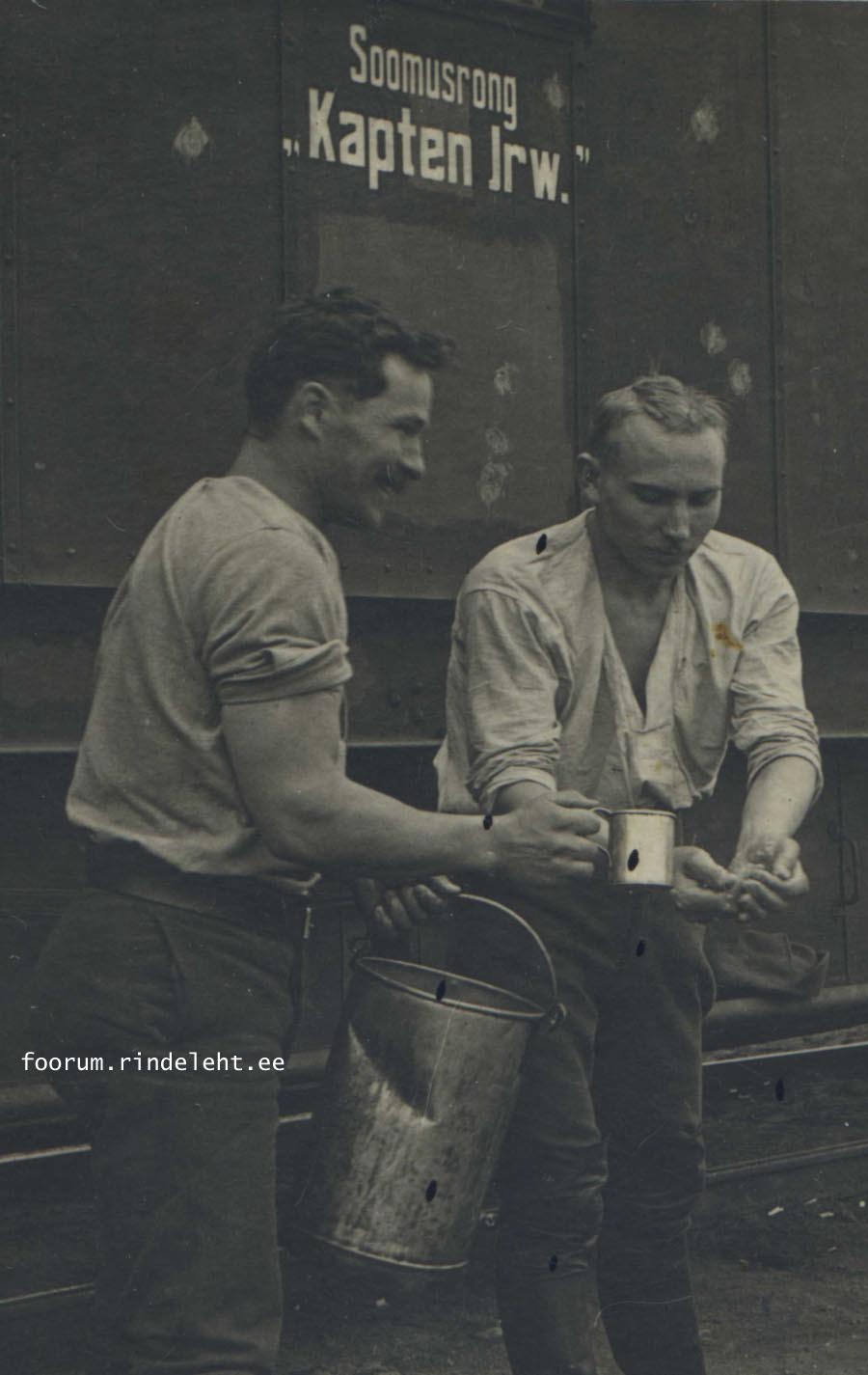 Lepassaarest Petseri poole, R. Iste oli valves, metsa taga viskas üles suitsu (varahommikul), näeb vaguneid tulemas, kui annan alarmi on juba liiga hilja – lasi ühe lasu ja teine vagun sai pihta, rong jäi seisma. Umbes 10 minuti pärast haagiti kaks vagunit lahti ja jäeti maha, ülejäänud rong põgenes. Meie mehed läksid ligi. Läksid edasi Pihkva alla, umbes 50 meest läksid Pihkvat vallutama. Võeti sõbralikult vastu. Naised ja lapsed tahtsid süüa, teine rong tõi süüa.